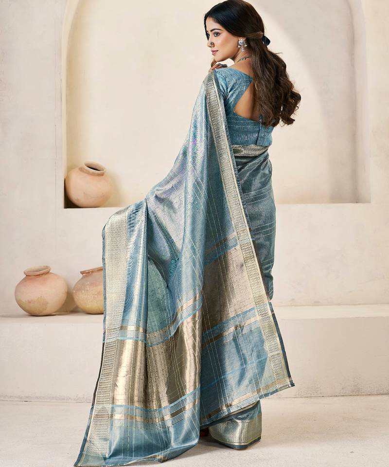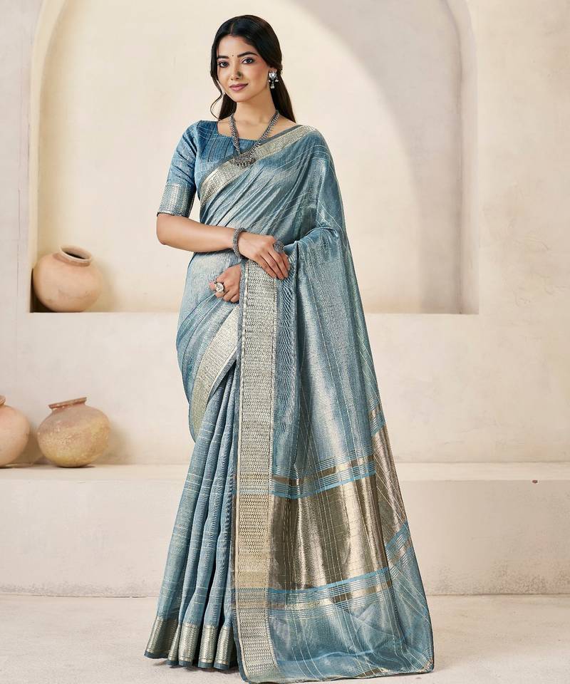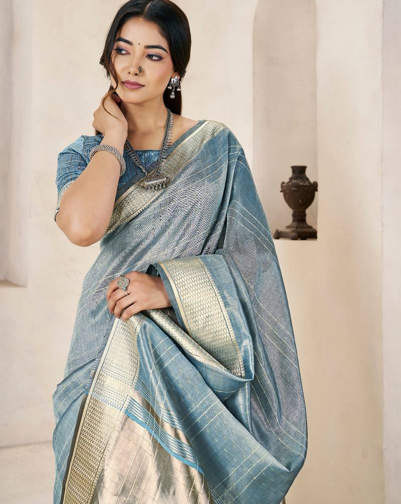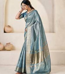 Soft linen cotton silk saree with gold zari weaving | elegant party & wedding wear saree