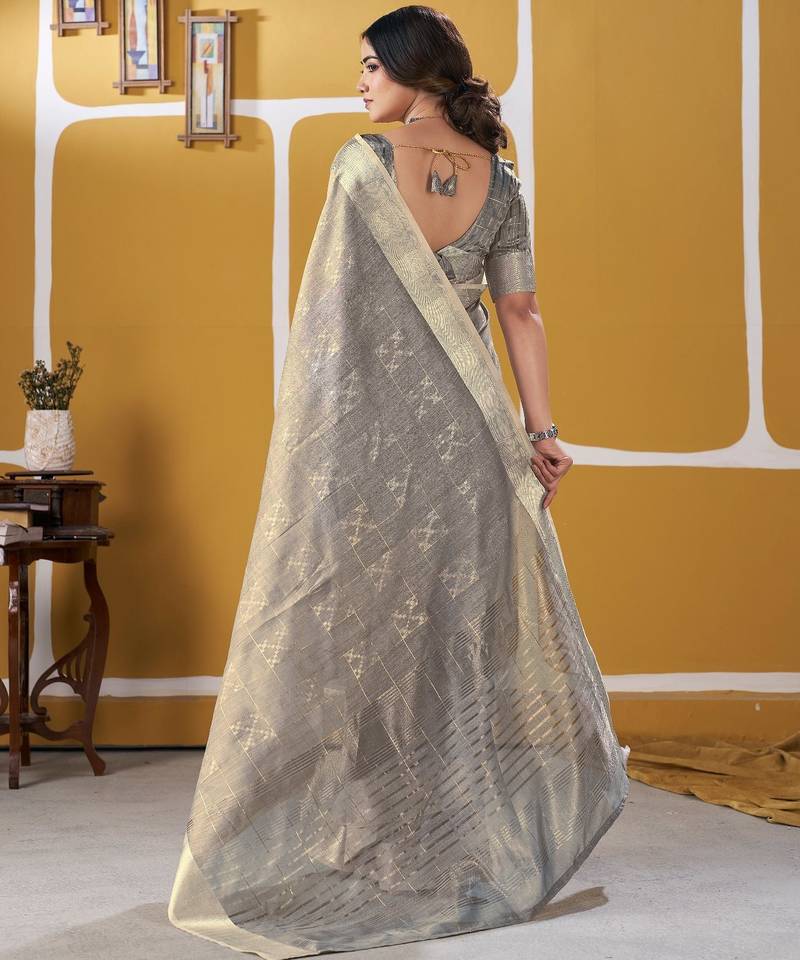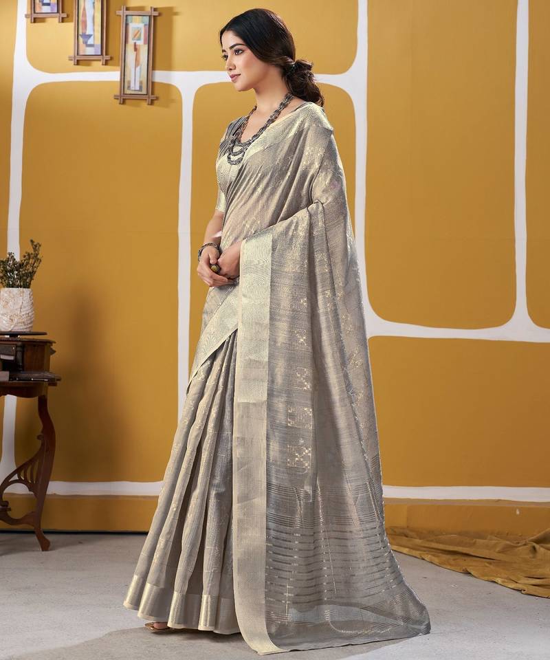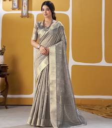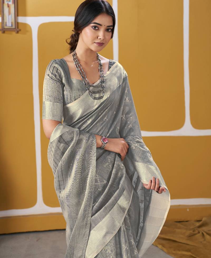 Soft linen cotton silk saree with gold zari weaving | elegant party & wedding wear saree