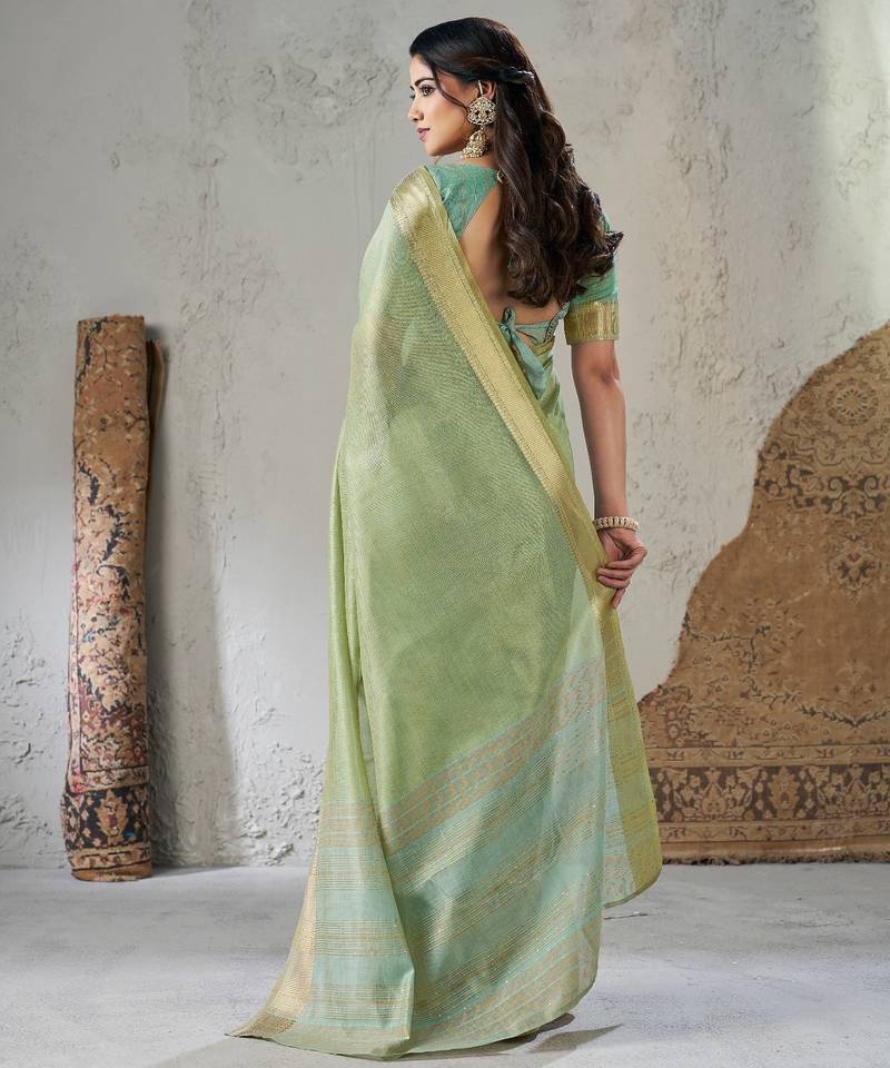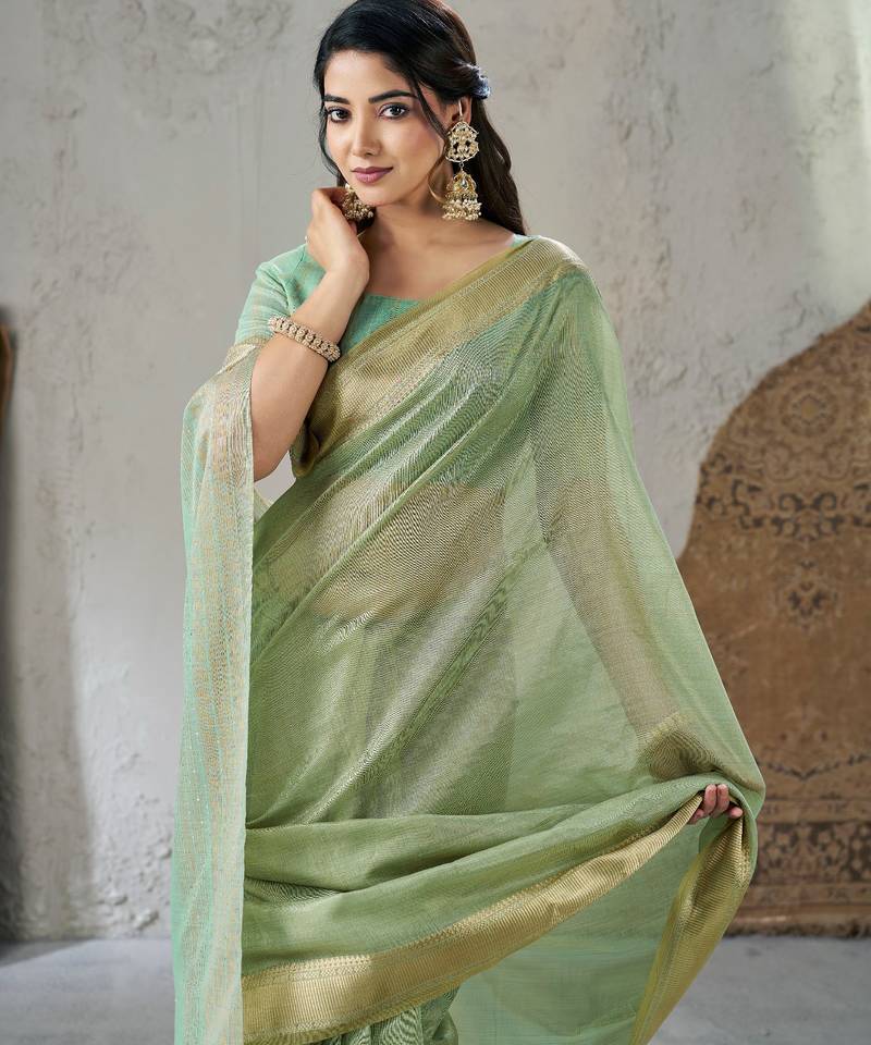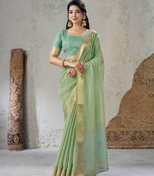 Soft linen cotton silk saree with gold zari weaving | elegant party & wedding wear saree
