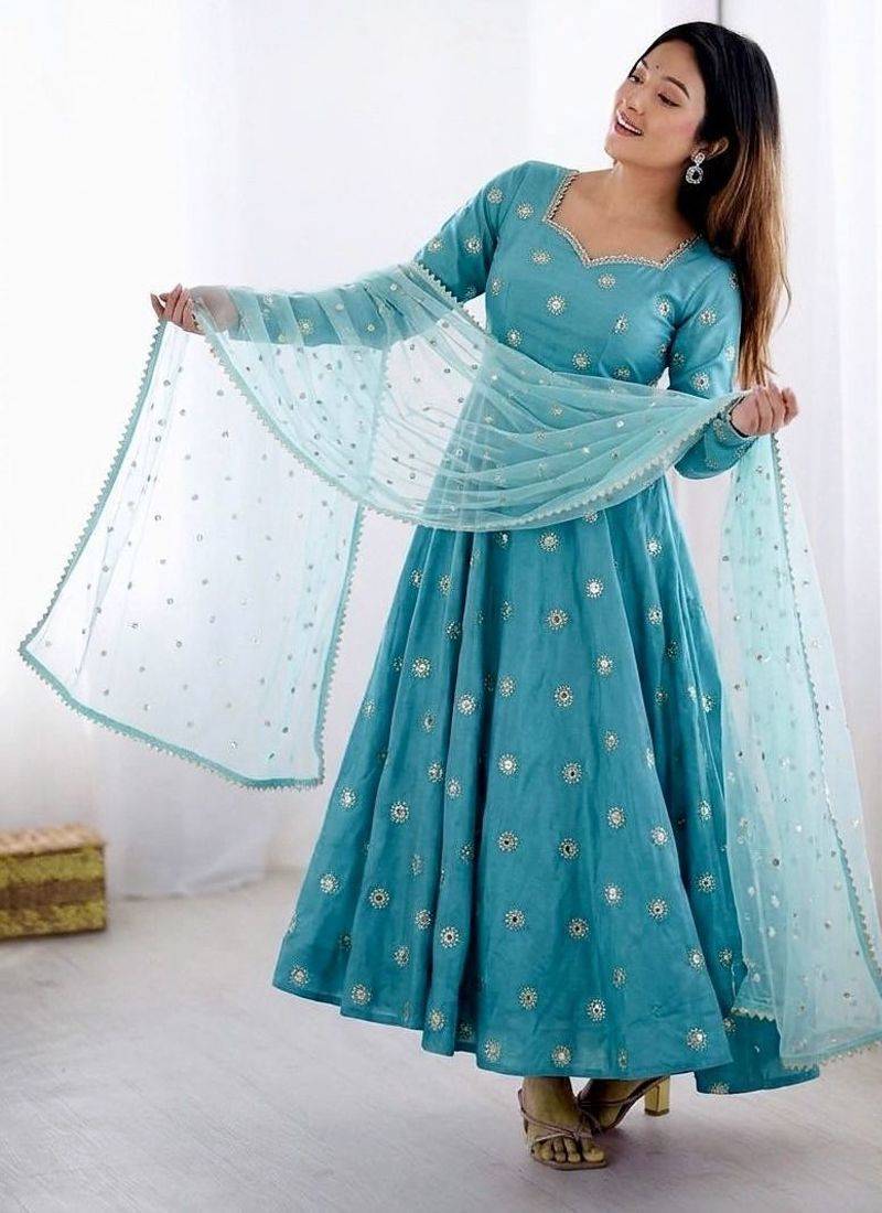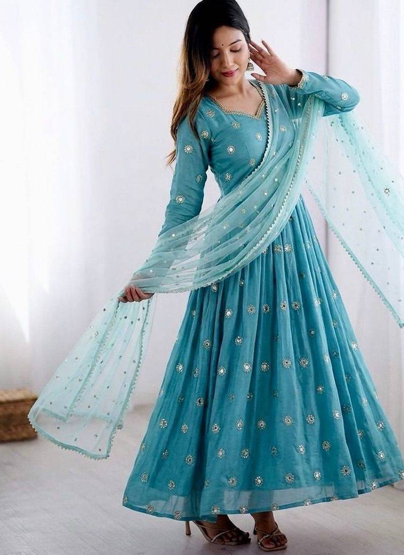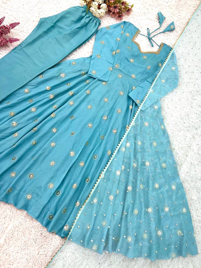 | Product Description | Make A Graceful Statement With This Premium Gown Set Crafted In Luxurious Vichitra Silk. Featuring Intricate Heavy Embroidery Sequence Work And A Flattering 3 Meter Flair, This Outfit Is Perfect For Weddings, Festive Occasions, And Party Wear. |