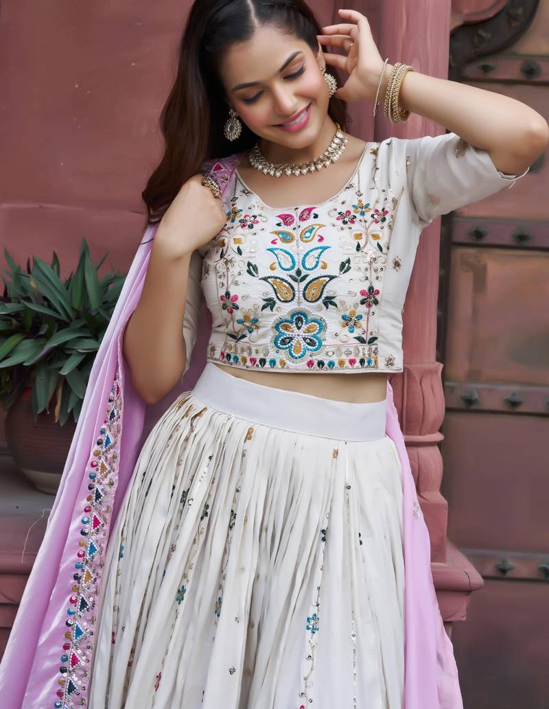 | Product Name | White Tissue Silk Embroidered Lehenga Choli Set | |