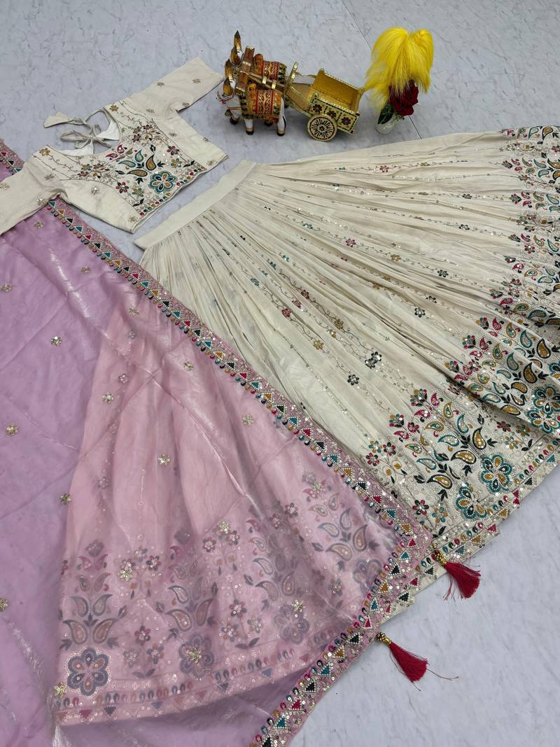 White tissue silk embroidered lehenga choli set