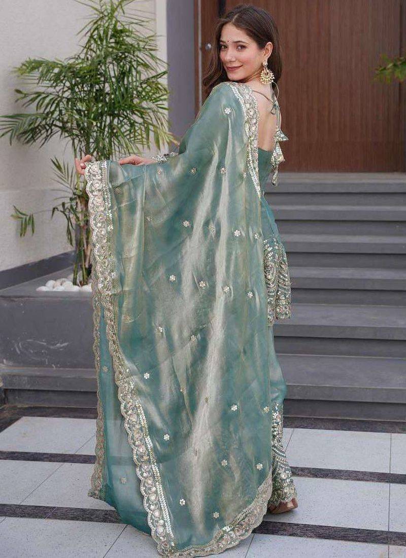 | Product Name | Women’s Sky Blue Embroidered Fandy Silk Kurta Sharara Set With Dupatta – Festive & Party Wear Ethnic Suit | |
