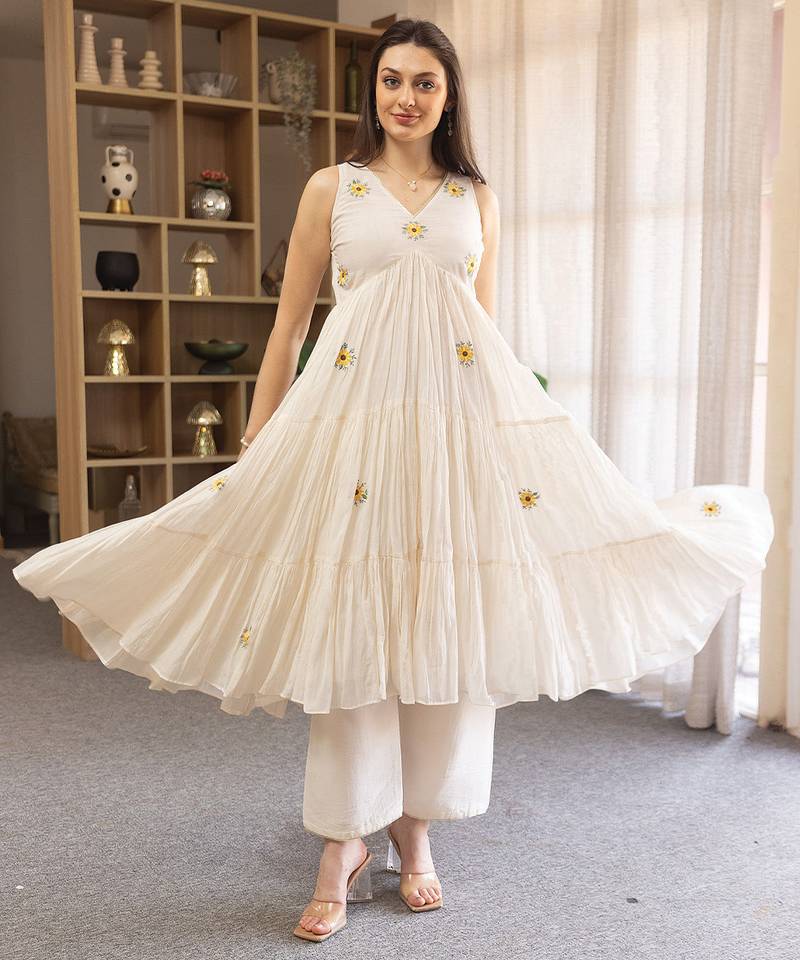 | Product Name | Off White Embroidered Mulmul Anarkali Set | |