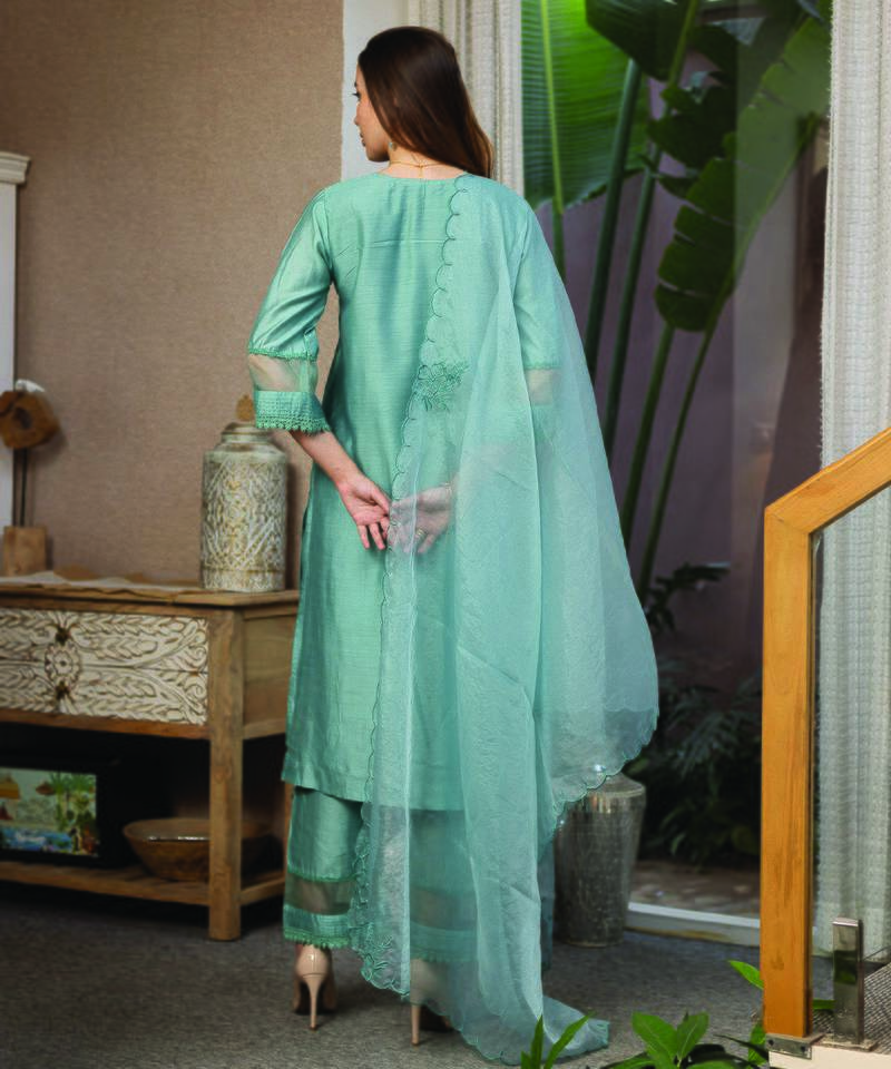 | Product Name | Mint Green Embroidered Chanderi Straight Suit Set | |