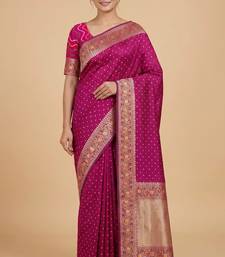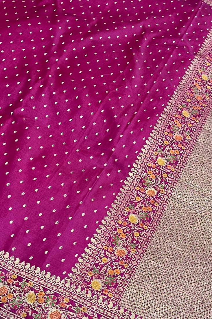 Banarasi mashru silk saree in rani pink with floral zari with booti work