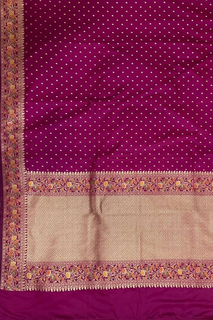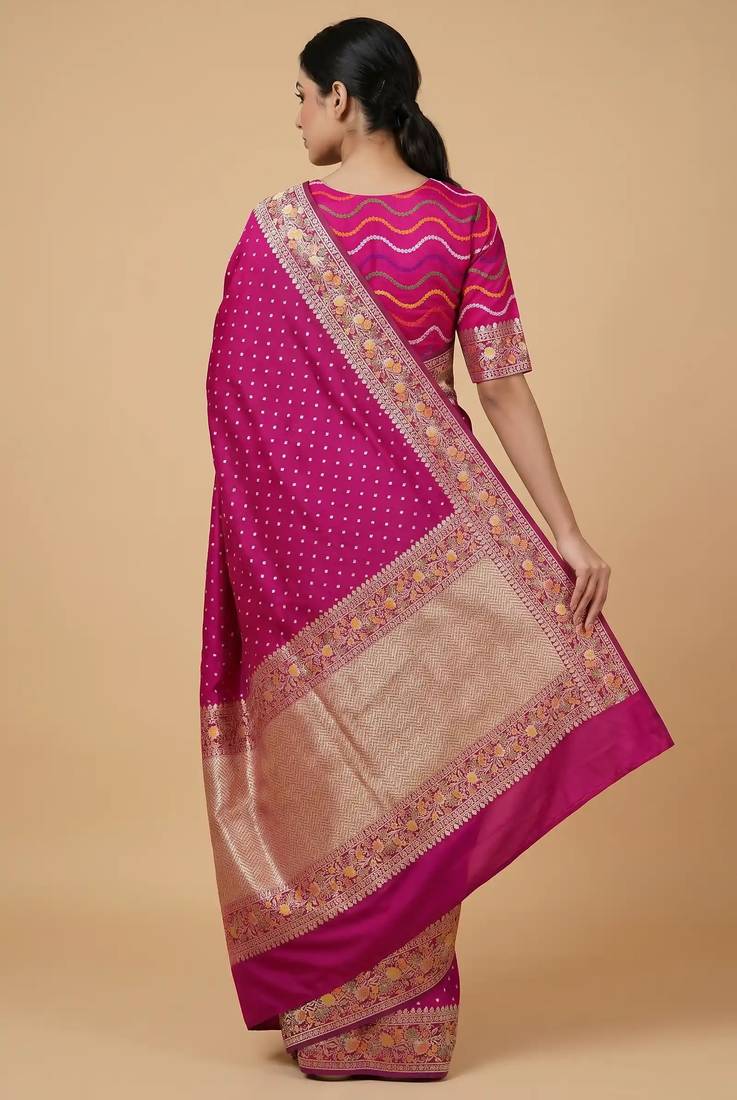 | Product Name | Banarasi Mashru Silk Saree In Rani Pink With Floral Zari With Booti Work | |