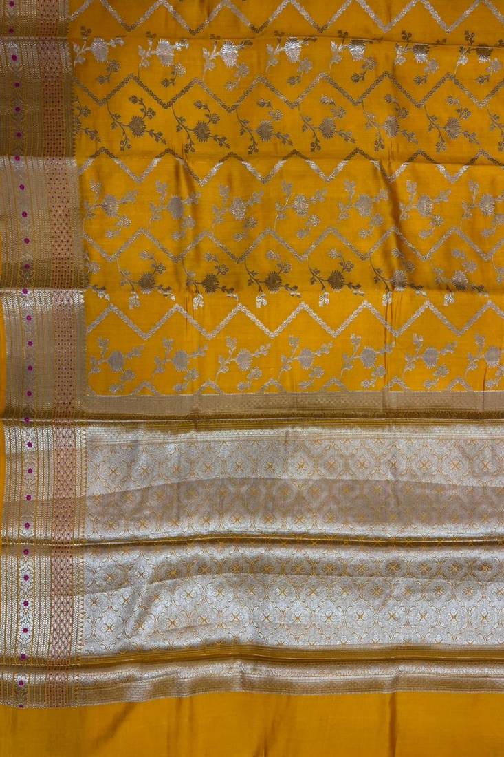 | Product Name | Banarasi Pure Silk Chiniya Saree In Mustard Colour With Floral Zari Zig Zag Pattern With Red Colour Meenakari | |