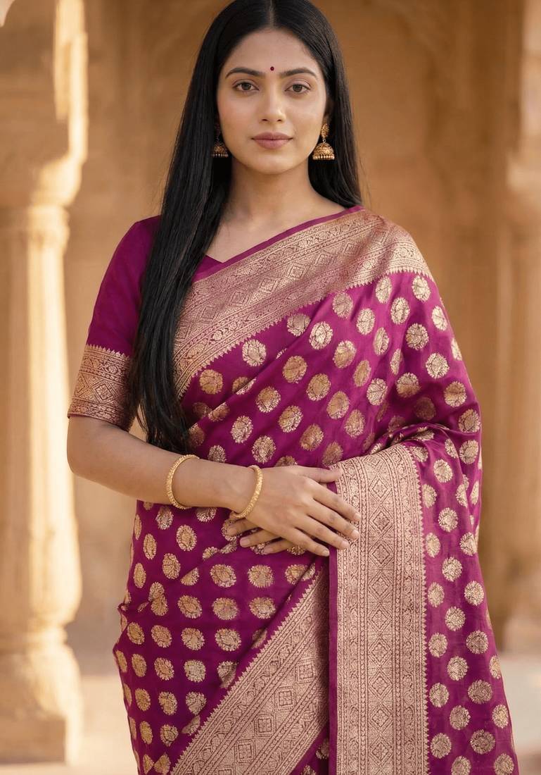 | • | Saree | : | Color- Rani Pink / Fabric- Pure Banarasi Silk |