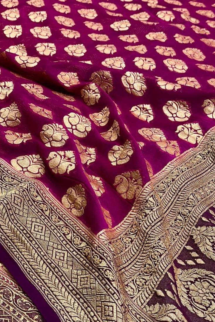 Banarasi puresilk khaddi georgette saree in rani pink colour with floral zari work