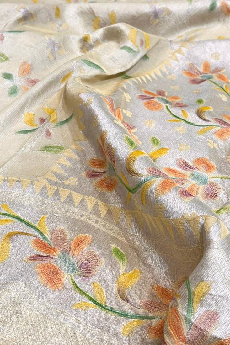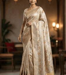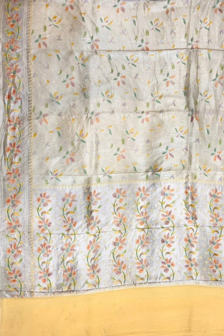 Banarasi puresilk khaddi georgette tissue saree in yellow color with minakari work