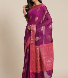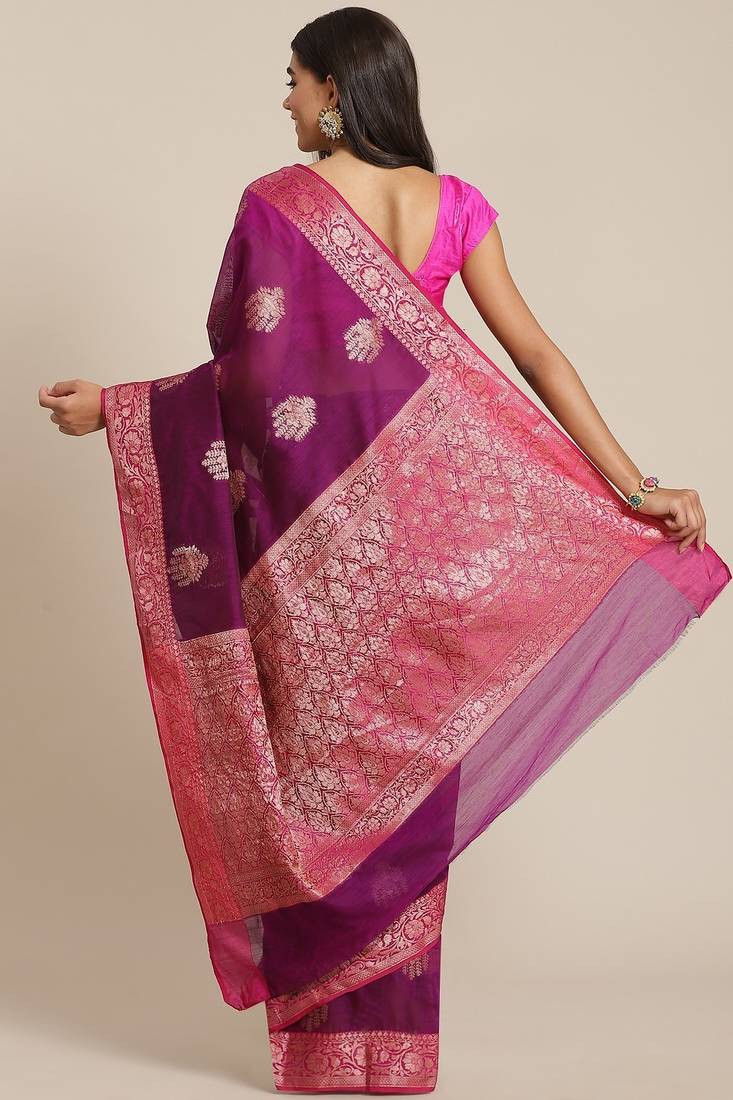 Banarasi silk blend cotton saree in magenta colour with zari work