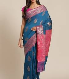 Banarasi silk blend cotton saree in navy blue colour with zari work