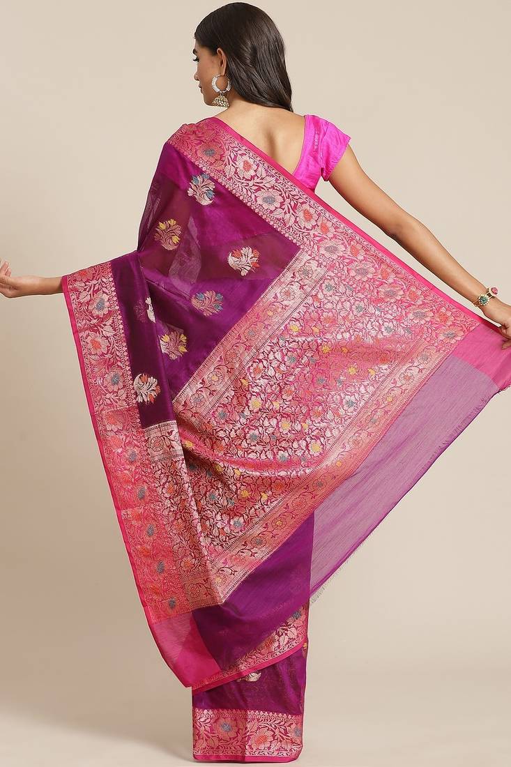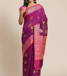 Banarasi silk blend cotton saree in purple colour with meenakari work