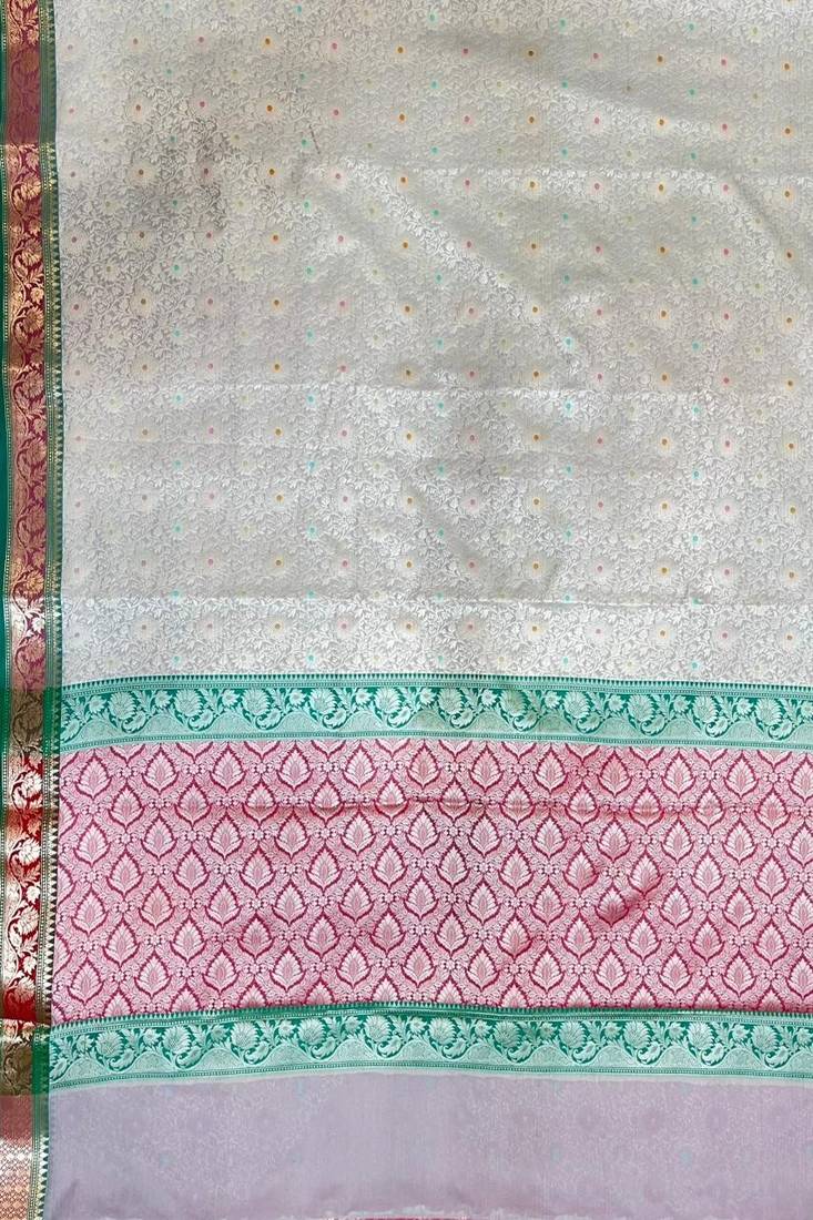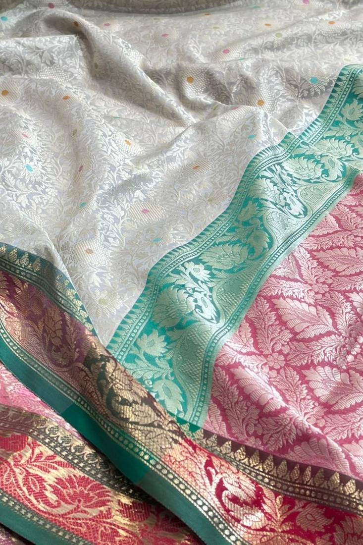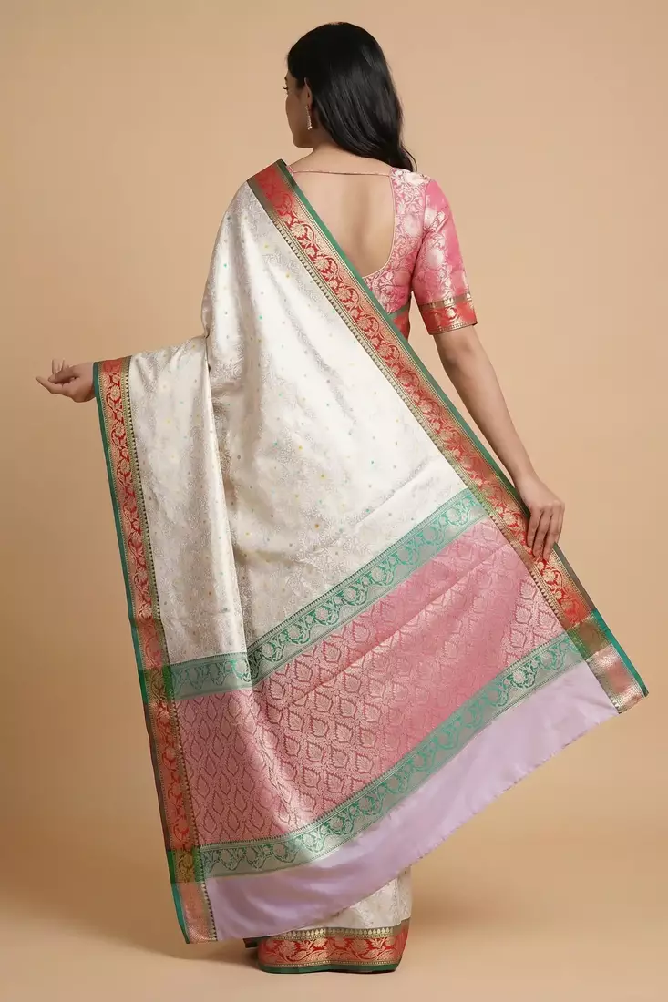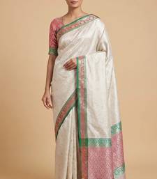Banarasi semi silk saree in beige colour with tanchoi meenakari work