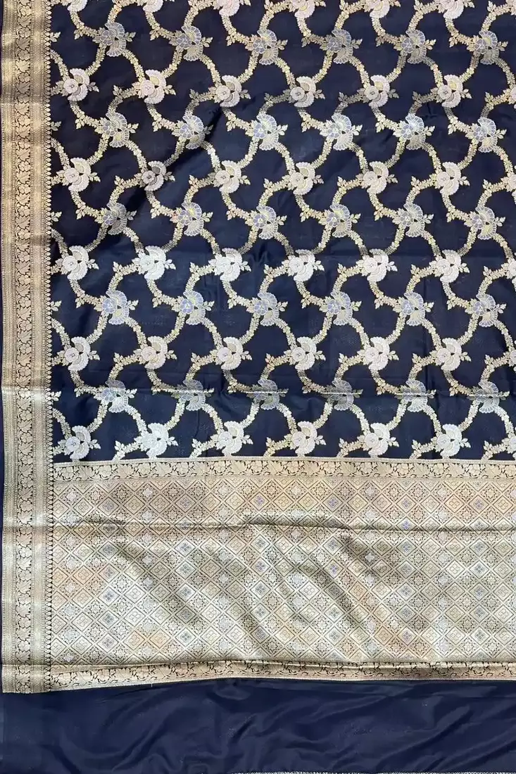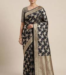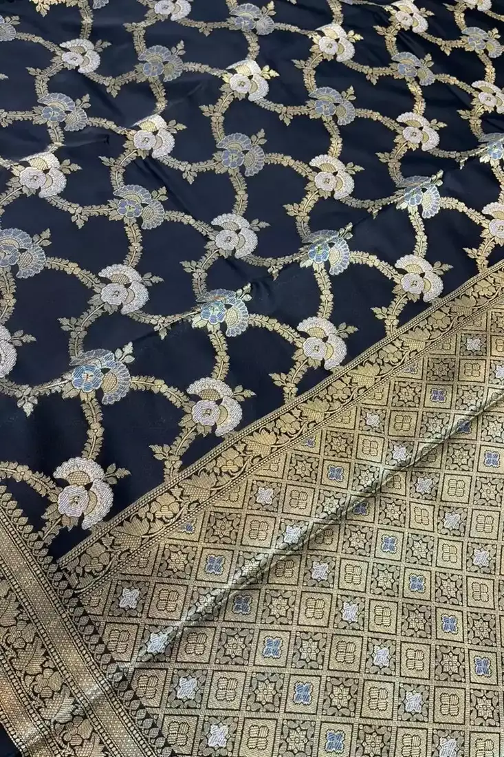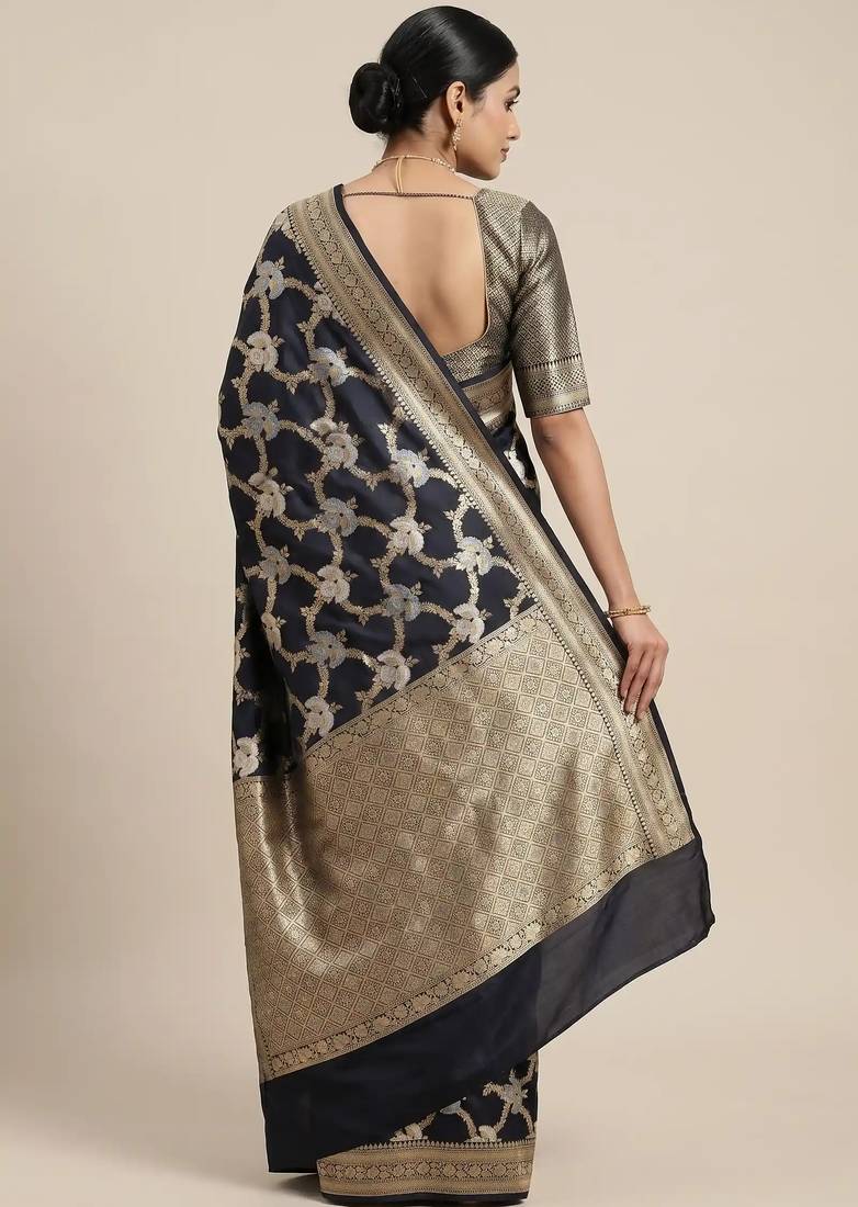 Banarasi semi silk saree in black colour with floral zari jaal work