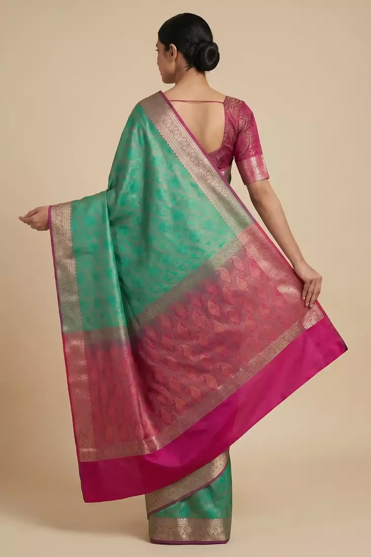 Banarasi semi silk saree in contrast shade with tanchoi work