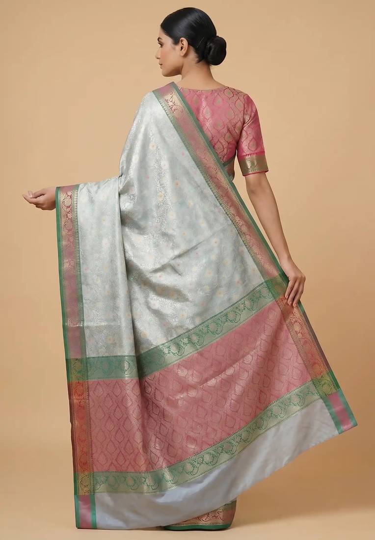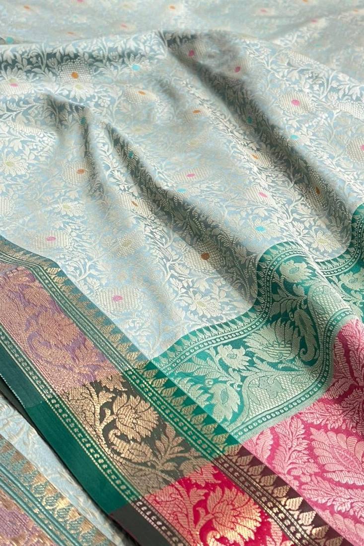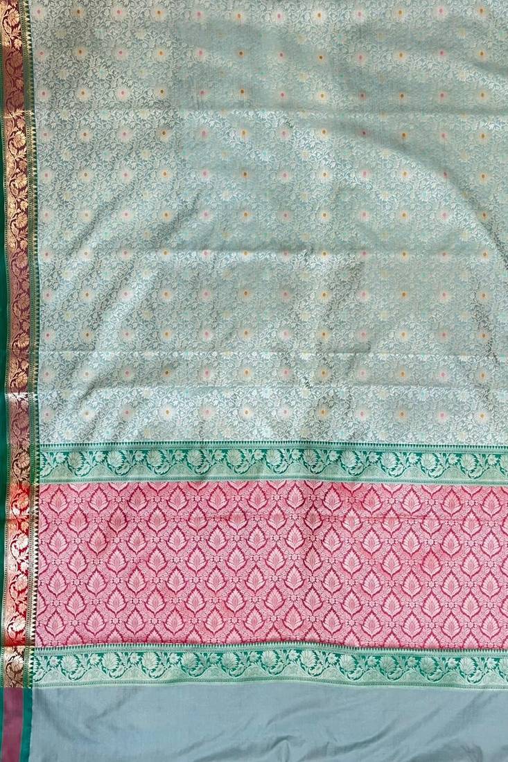 Banarasi semi silk saree in light green colour with tanchoi meenakari work