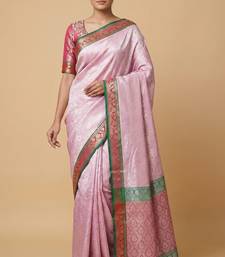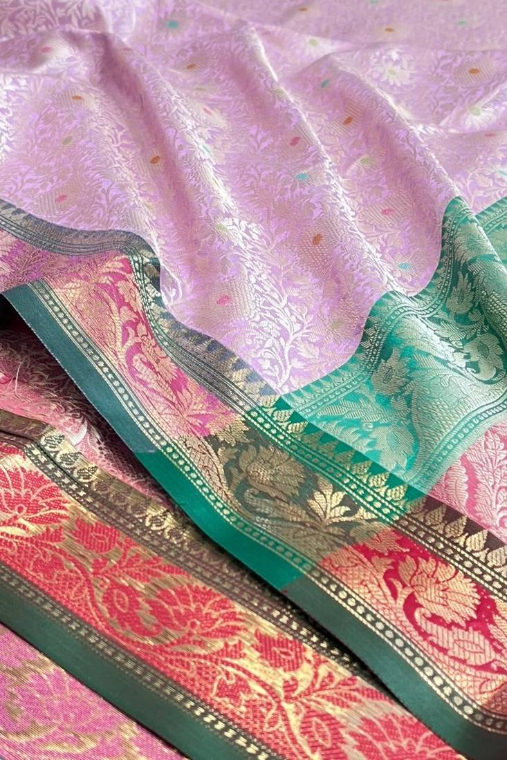 Banarasi semi silk saree in light pink colour with tanchoi meenakari work