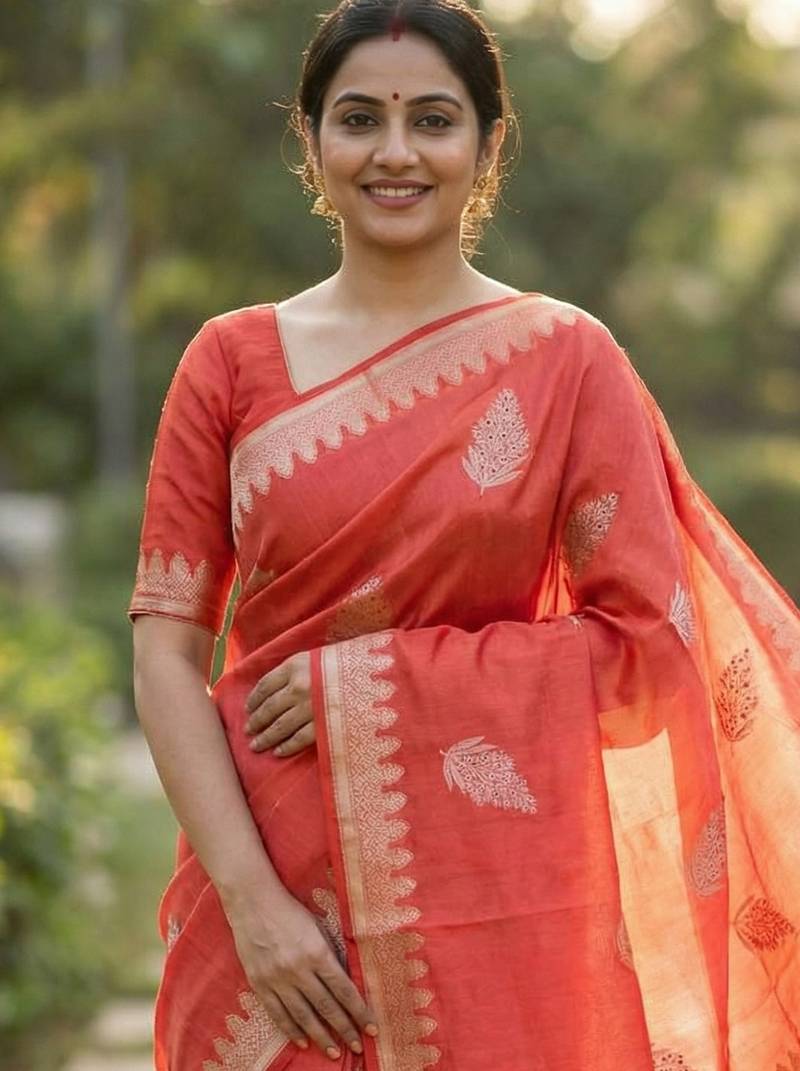 | Product Name | Banarasi Viscose Silk Saree In Orange Colour With Leaf Zari Meenakari Work | |