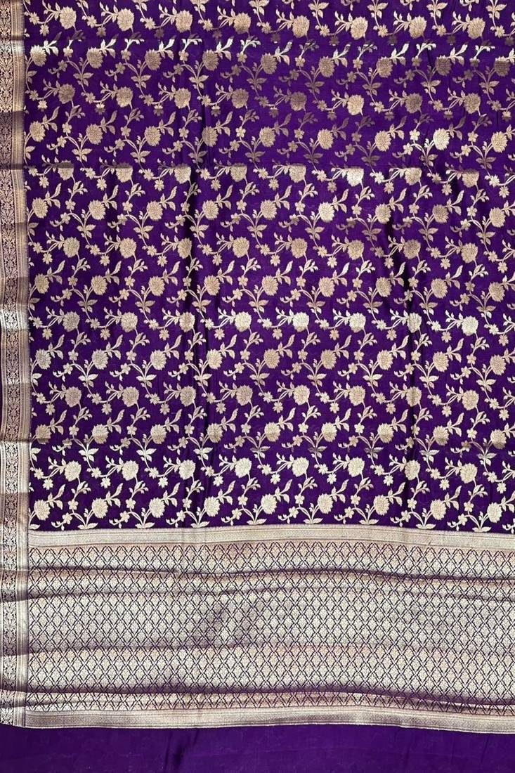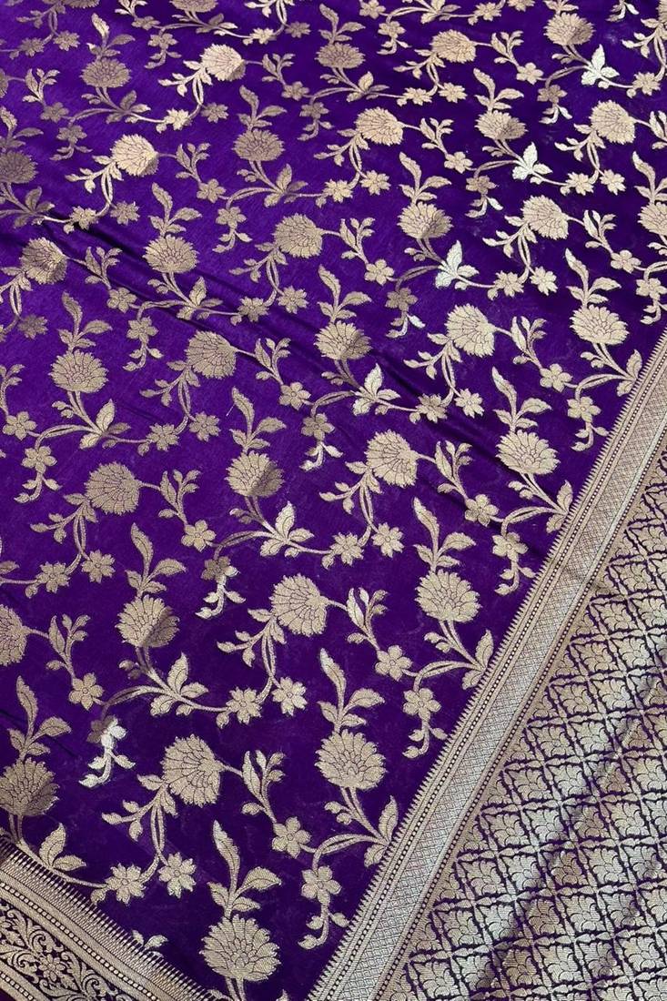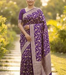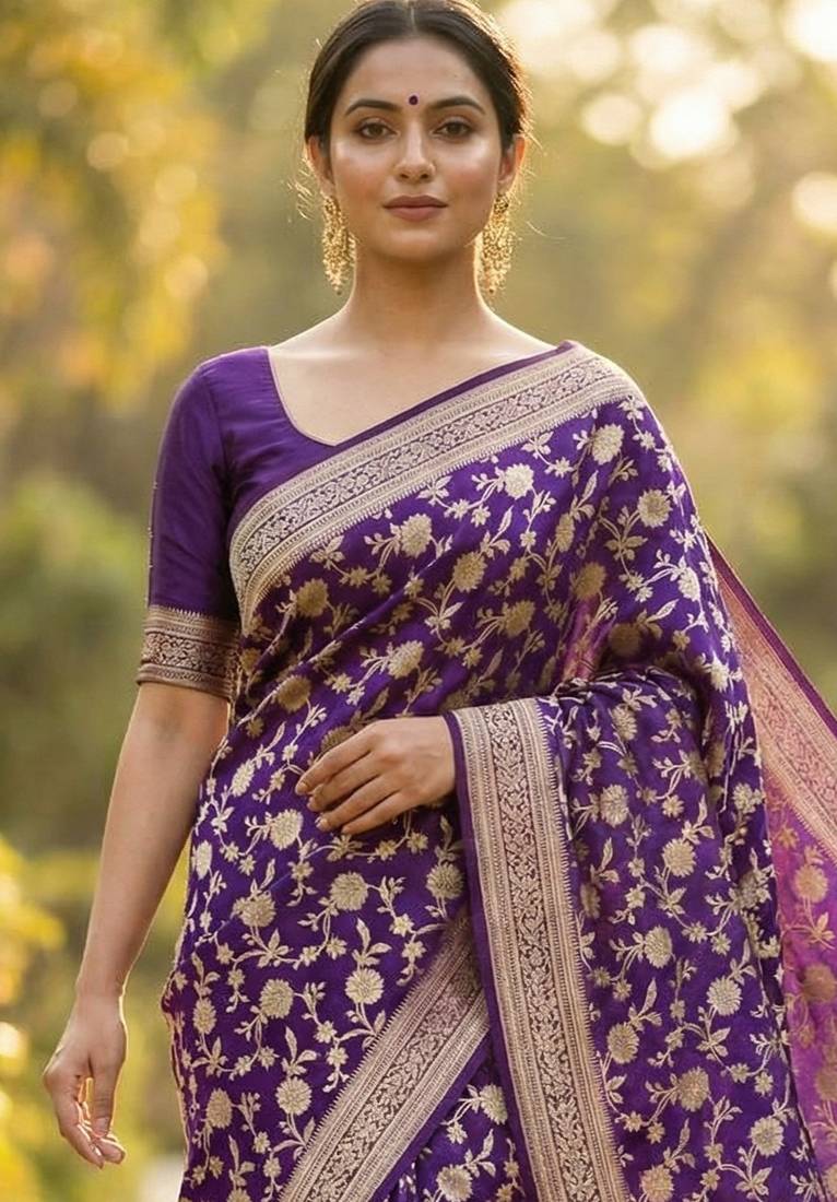 Banarasi viscose silk saree in purple colour with floral zari jaal work