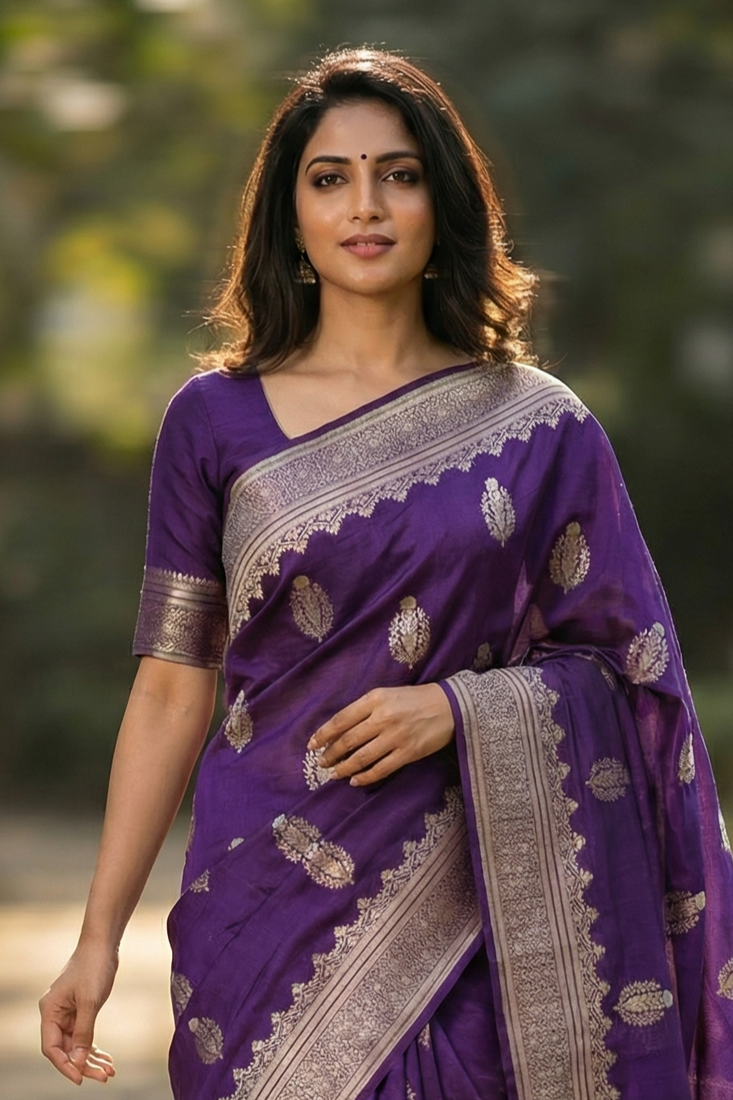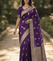 Banarasi viscose silk saree in purple colour with floral zari meenakri work