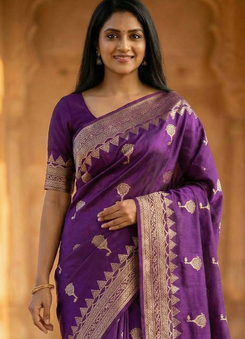 | Product Name | Banarasi Viscose Silk Saree In Purple Colour With Meenakari Work | |
