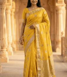 Banarasi viscose silk saree in yellow colour with meenakari work
