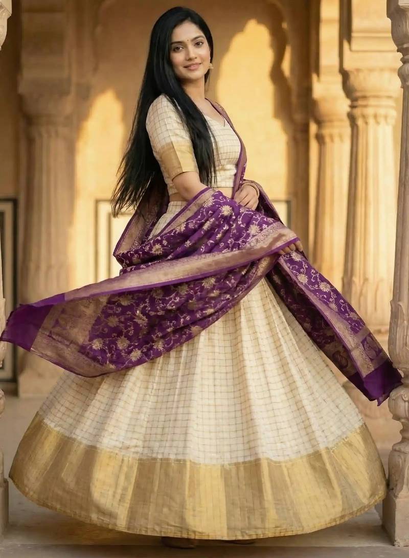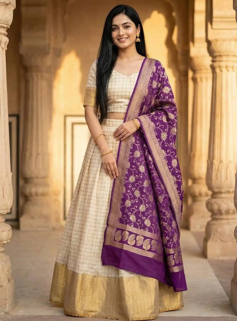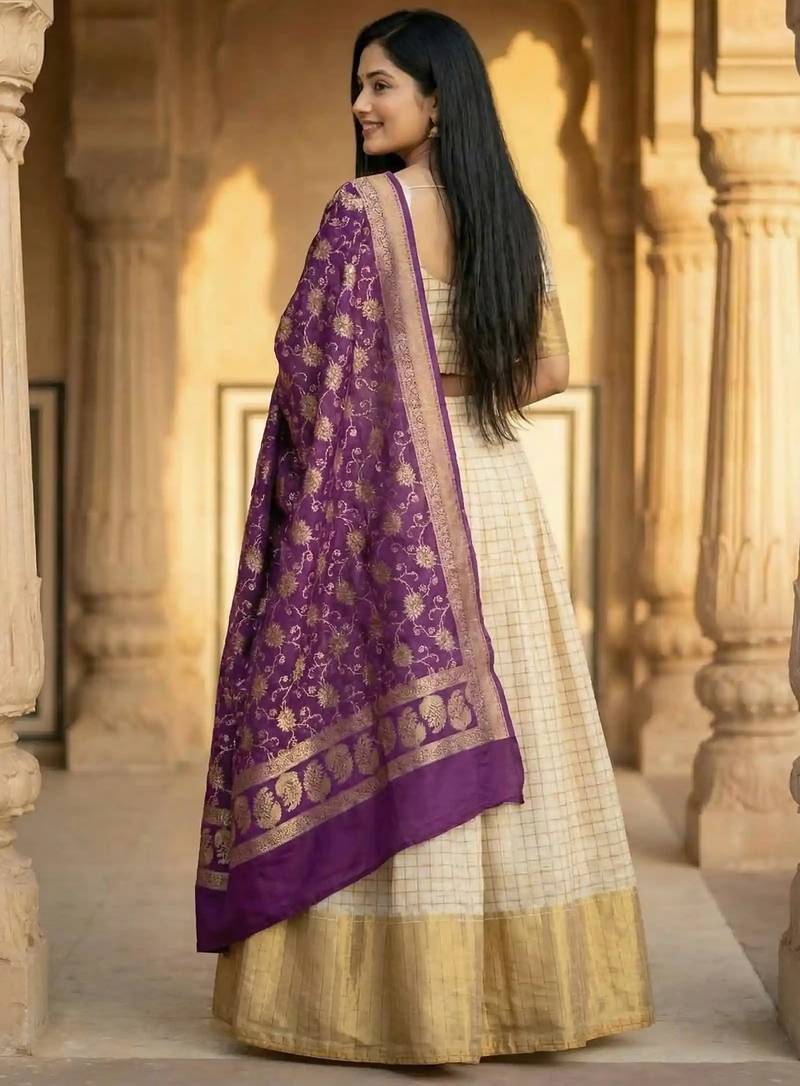| Product Name | Pure Munga Silk Unstitched Banarasi Lehanga Set In Cream Colour With Blouse | |