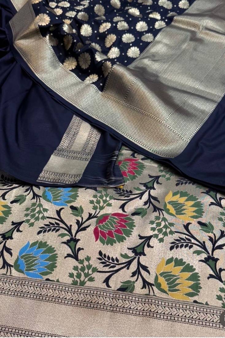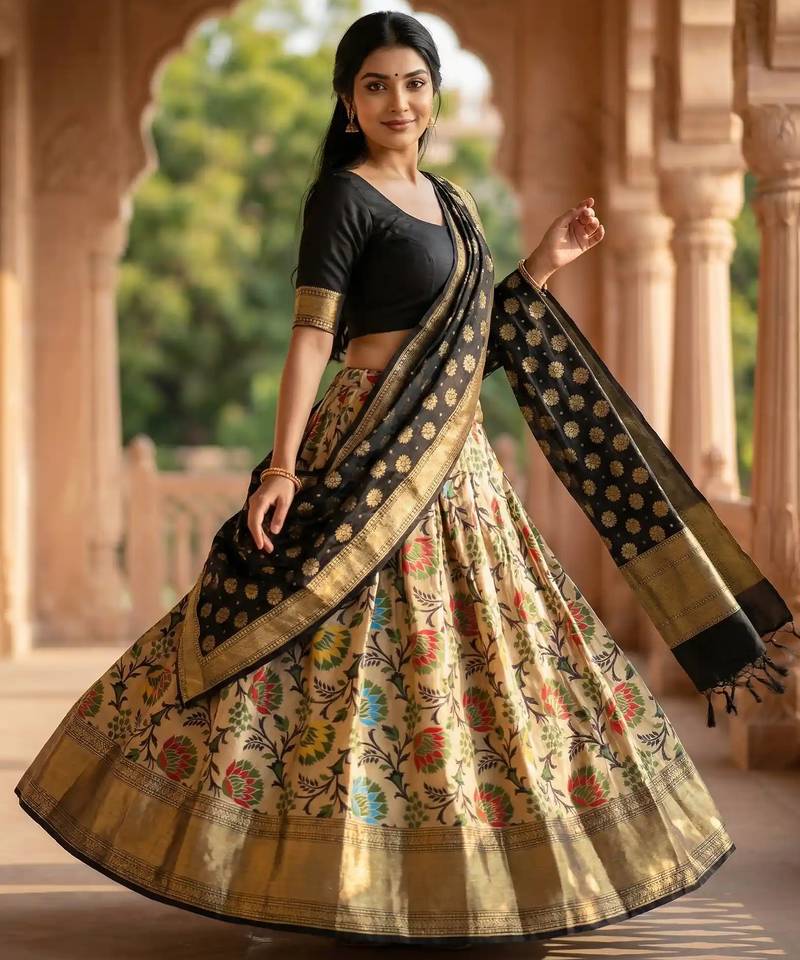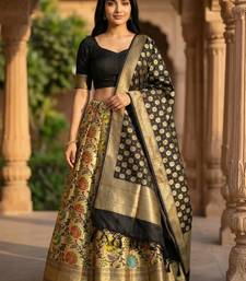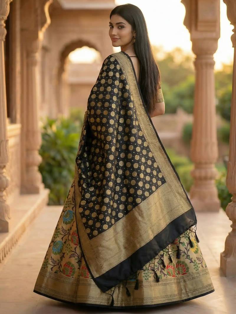 Pure silk unstitched banarasi lehanga set in black colour with blouse