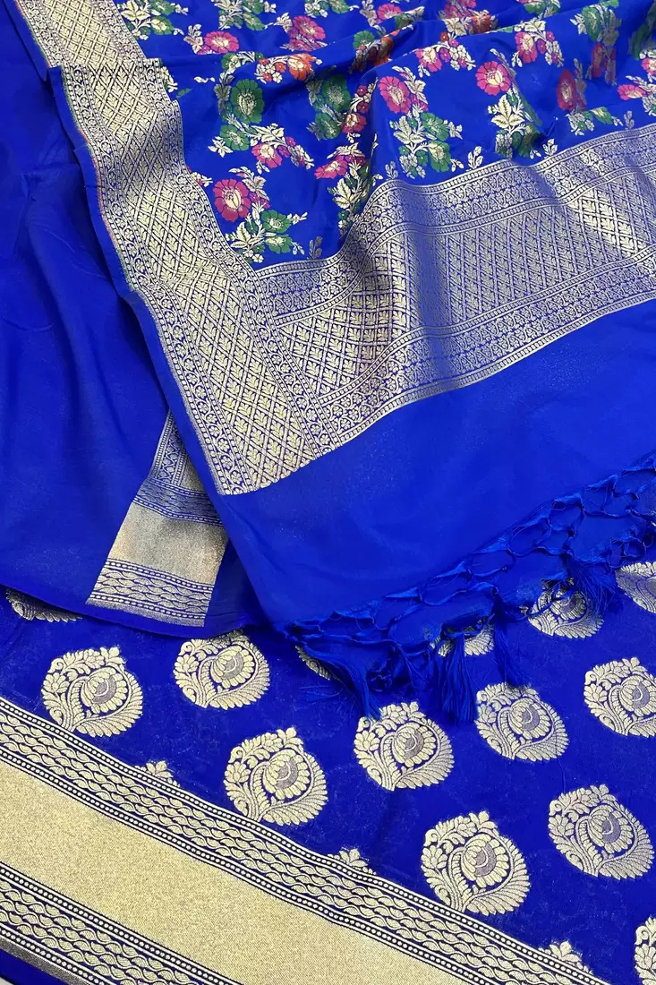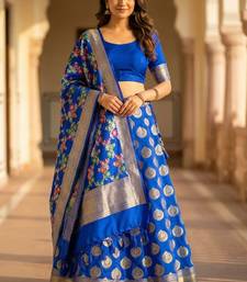 Pure silk unstitched banarasi lehanga set in royal blue colour with blouse