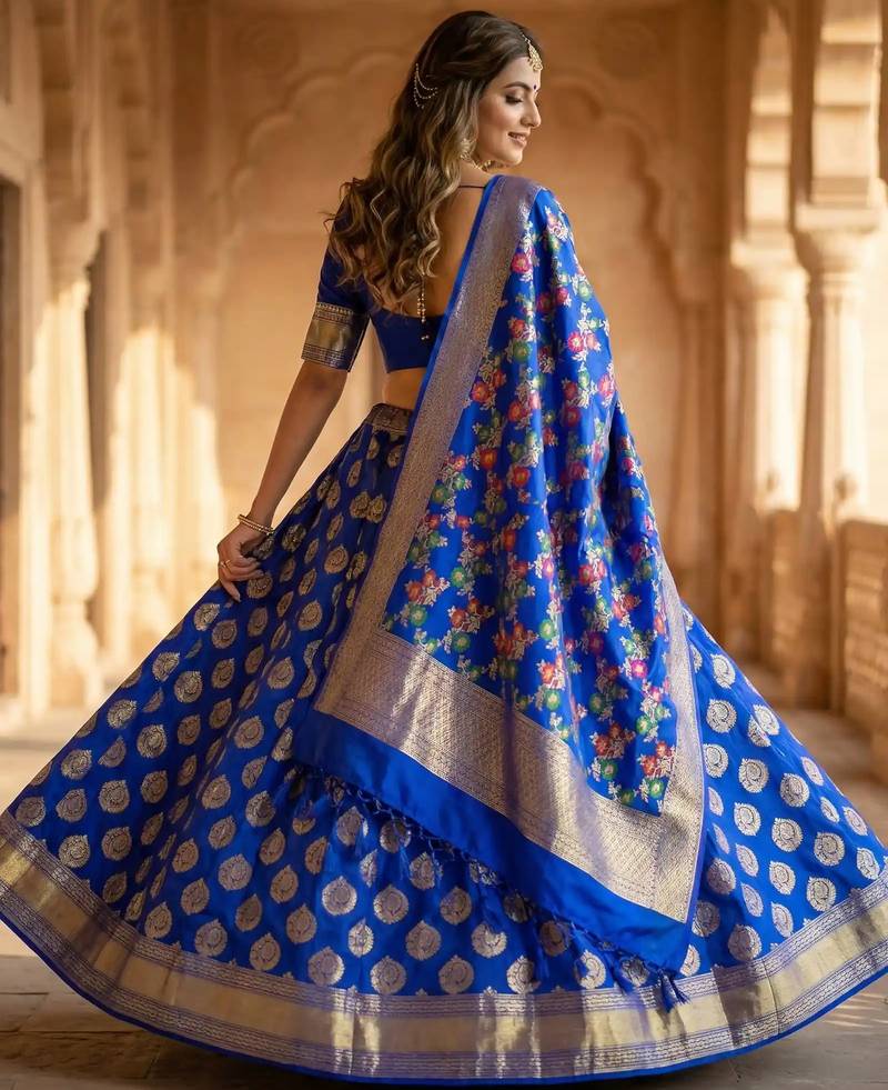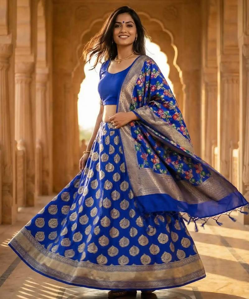 | Product Name | Pure Silk Unstitched Banarasi Lehanga Set In Royal Blue Colour With Blouse | |