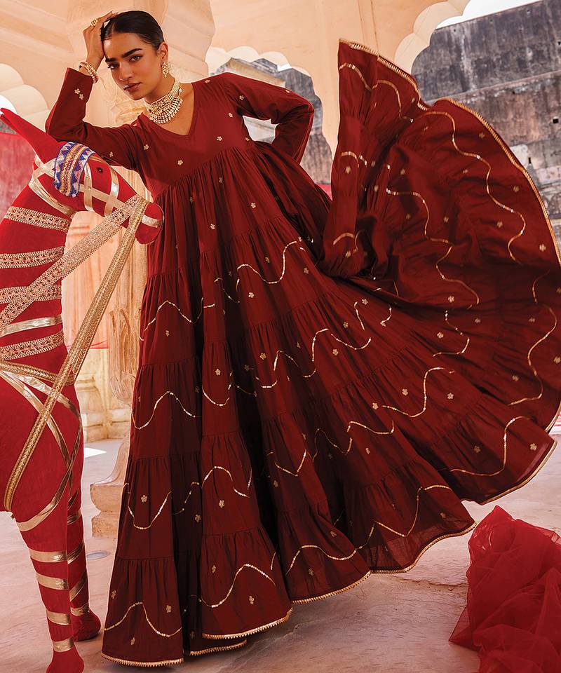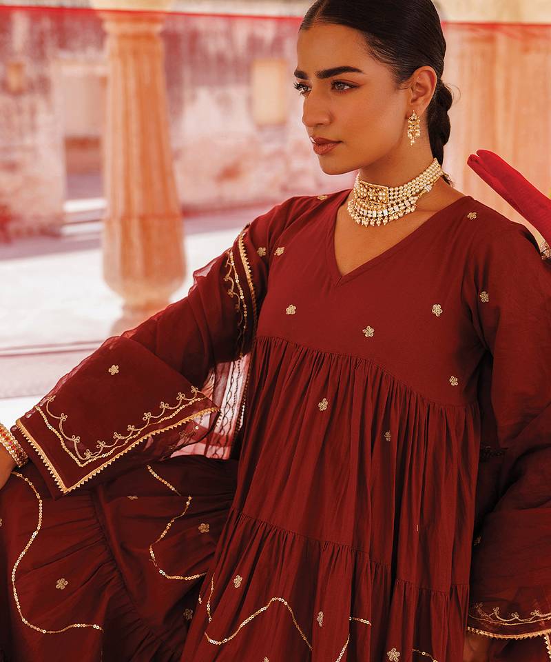 | Product Description | This Maroon Embroidered Cotton Anarkali Set Combines Rich Color With Delicate Detailing. The Soft Fabric Ensures Comfort, While The Flared Design Enhances Its Elegance. Ideal For Festive And Special Occasions, It Offers A Sophisticated And Timeless Ethnic Appeal.