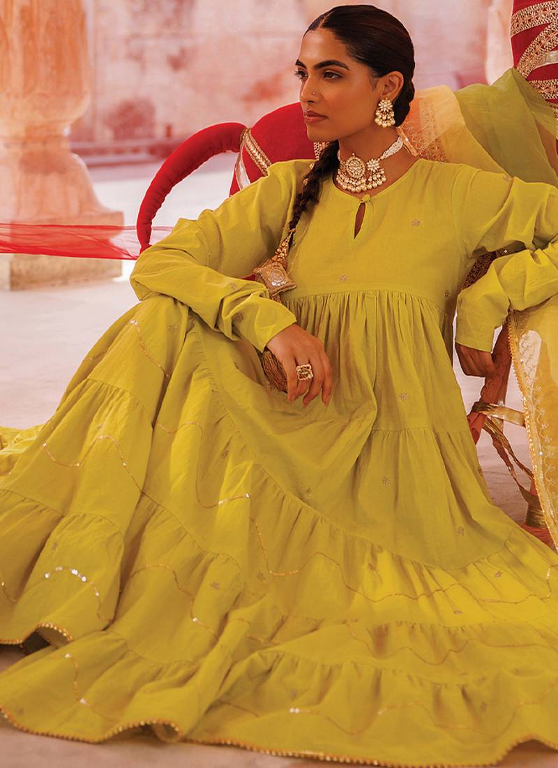 | Product Description | Bold And Vibrant, This Green Embroidered Cotton Anarkali Set Stands Out With Its Striking Color And Elegant Detailing. The Breathable Fabric Ensures Comfort, While The Flared Silhouette Adds Movement. Perfect For Festive Occasions, It Brings A Modern Twist To Traditional Wear.