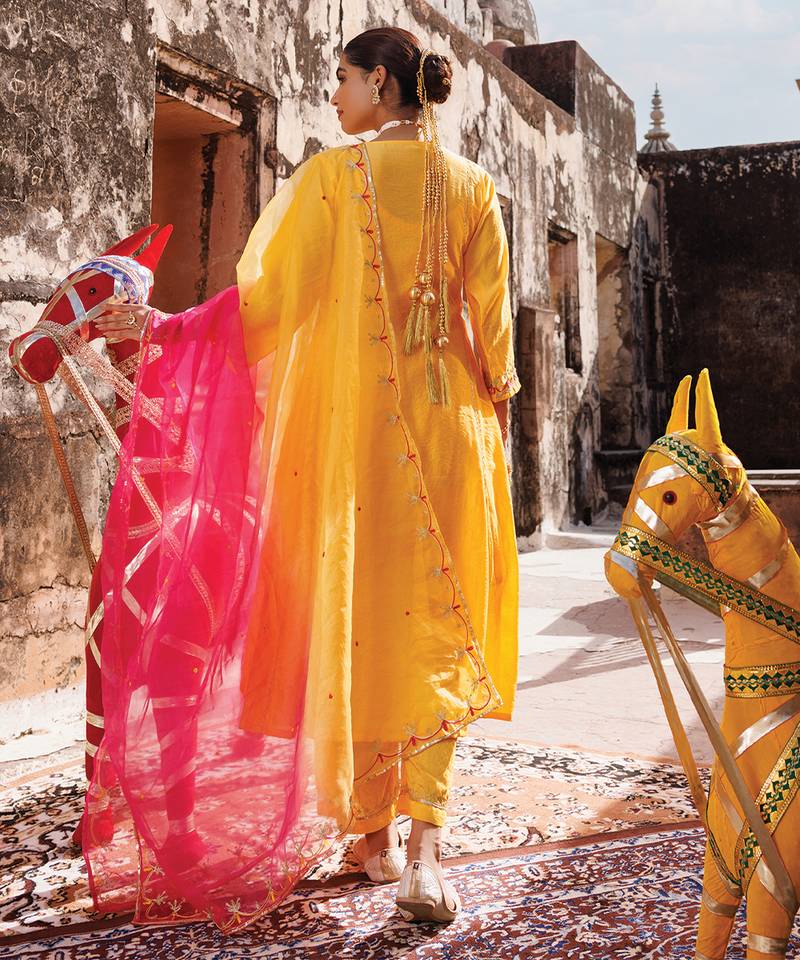 | Product Name | Yellow Embroidered Chanderi Anarkali Set | |