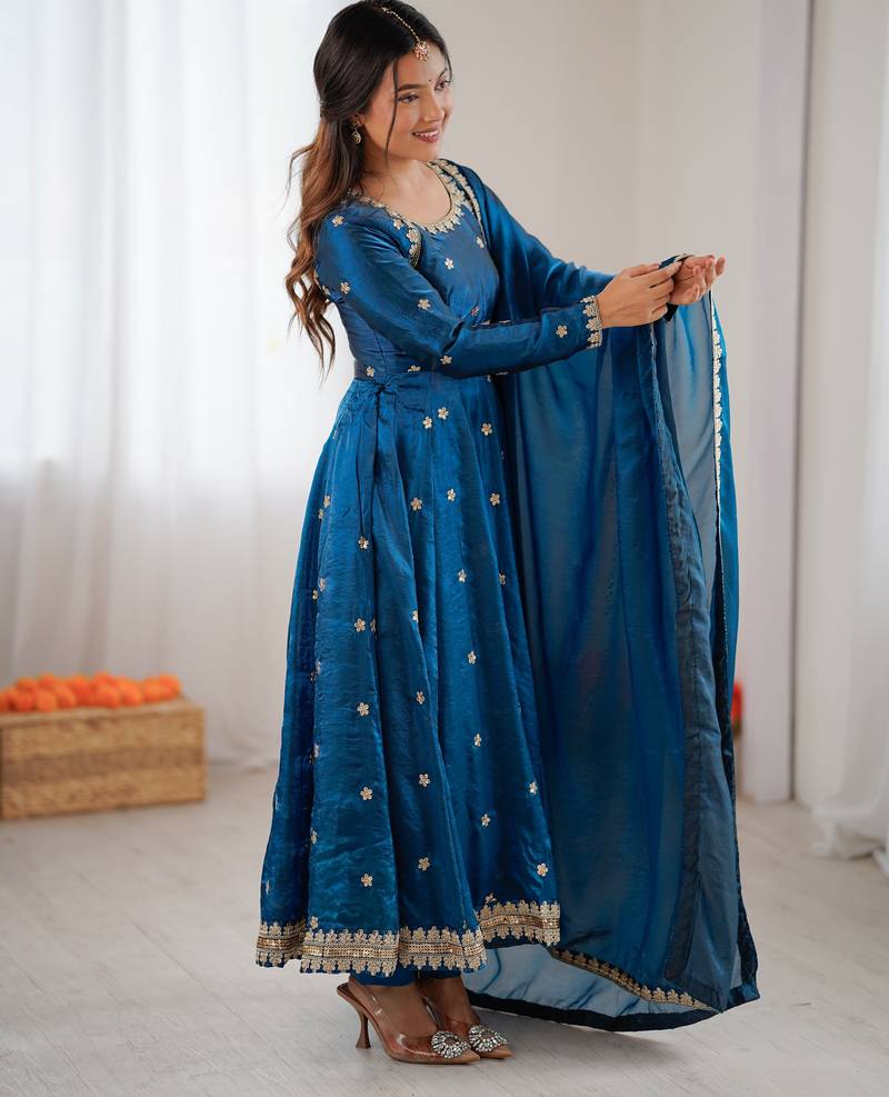Product Name Blue Anarkali Gown Suit Set With Dupatta