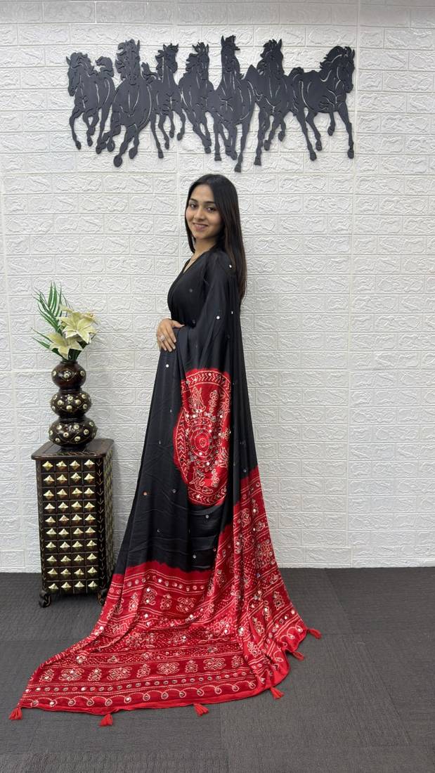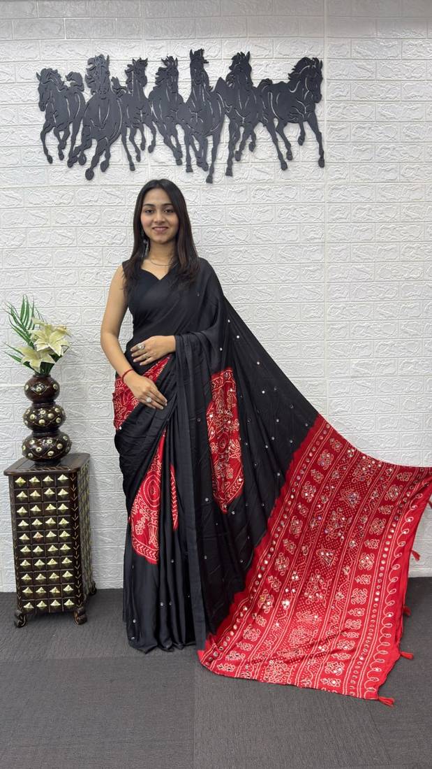 | Product Name | Black Color Heavy Mirror Work Satin Silk Saree | |