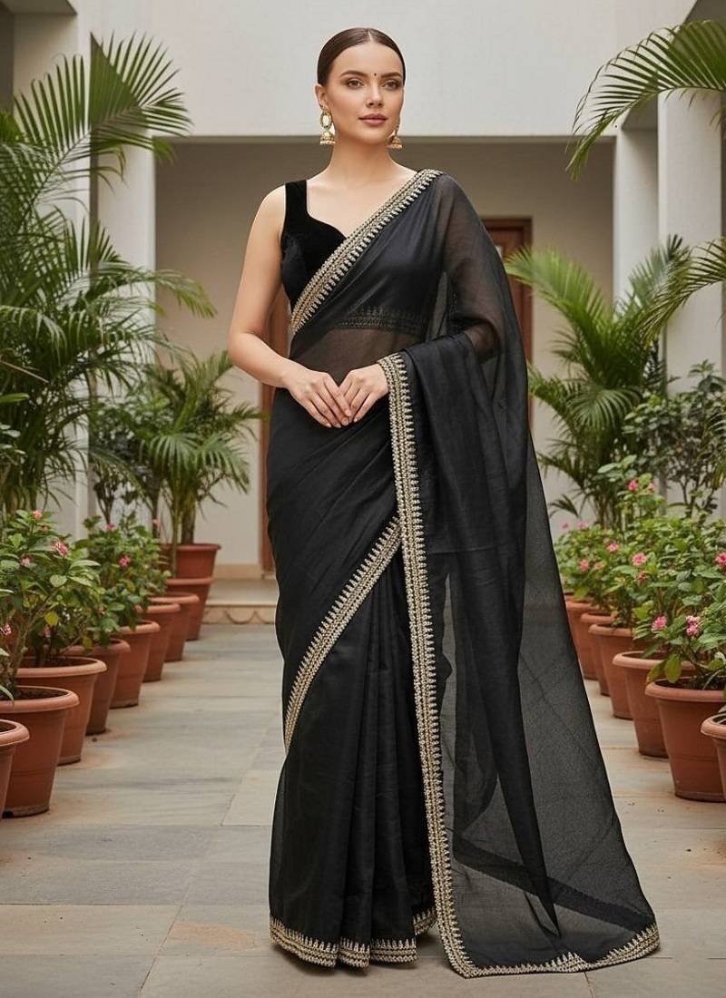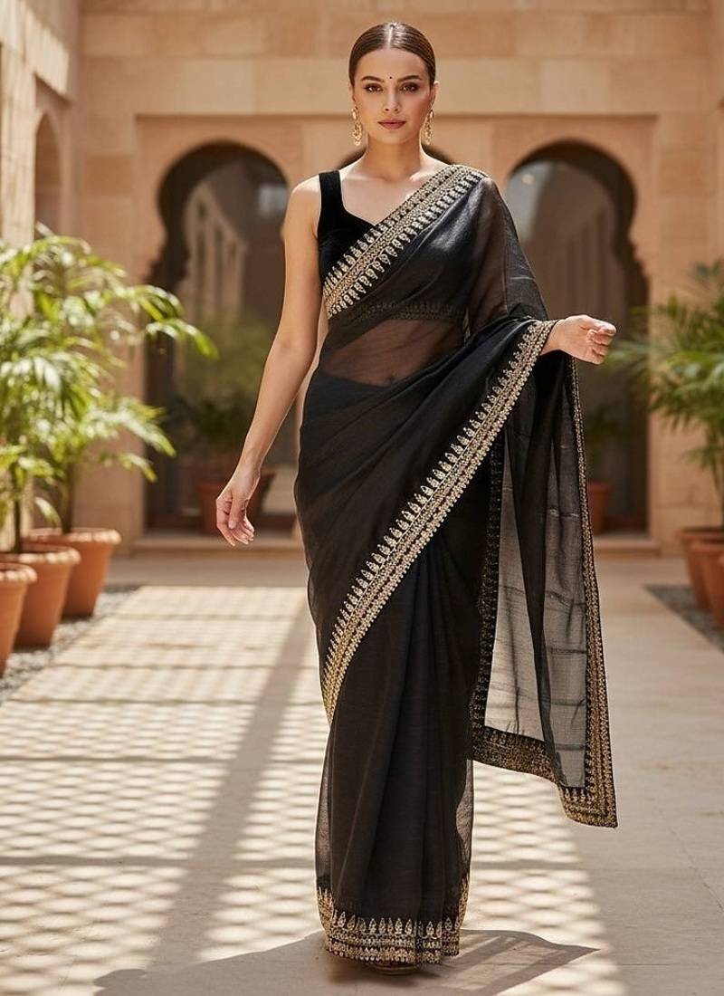 | Product Name | Black Color Sequins With Jari Dori Embroidery Work Net Sareer | |