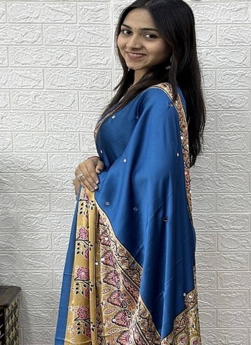 | Product Name | Blue Color Heavy Mirror Work Satin Silk Saree | |