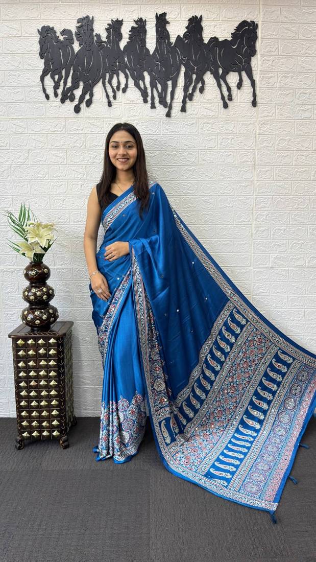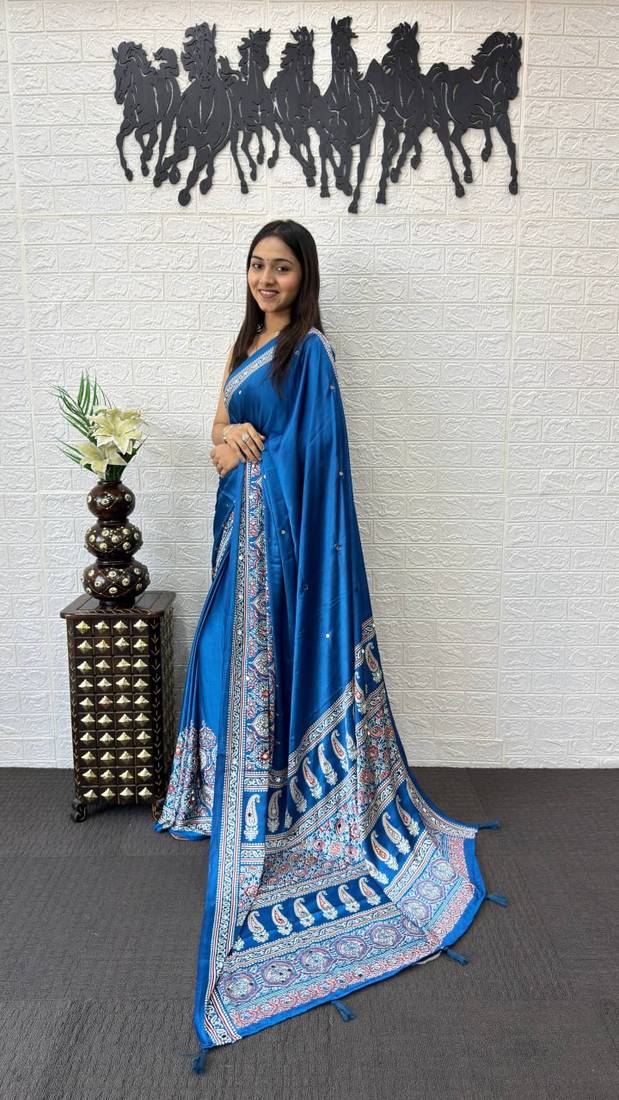 | Product Name | Blue Color Mirror Work Satin Saree | |