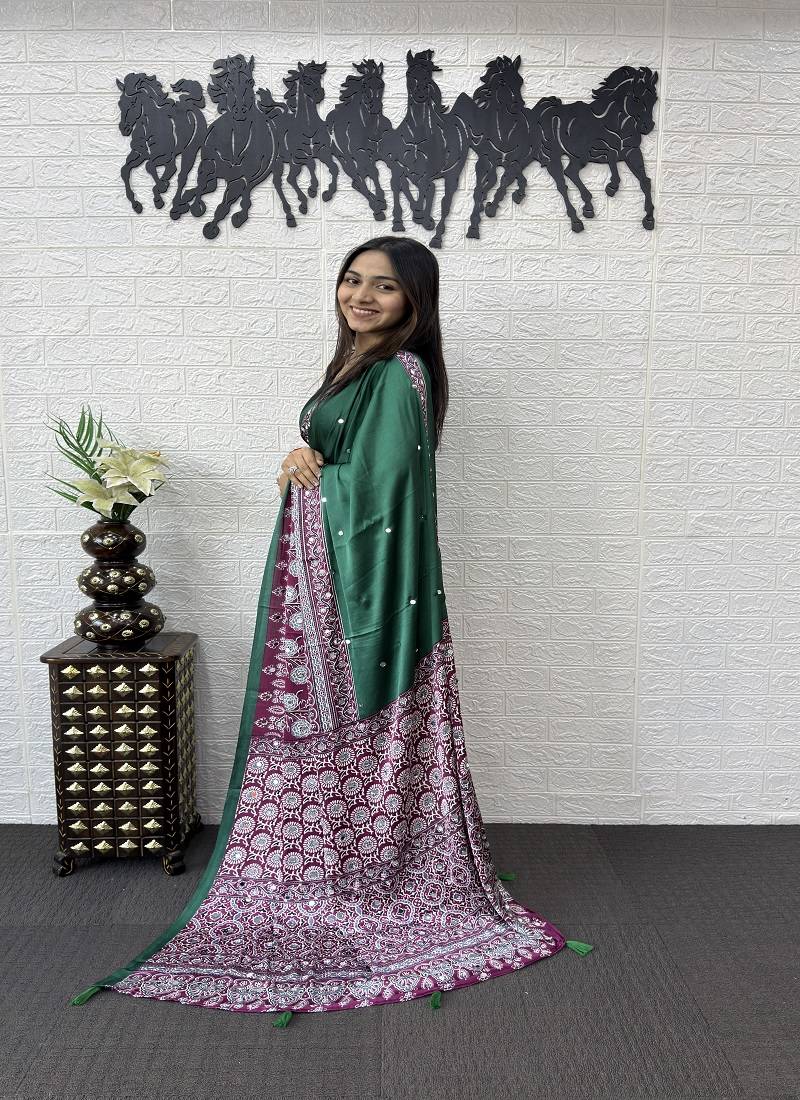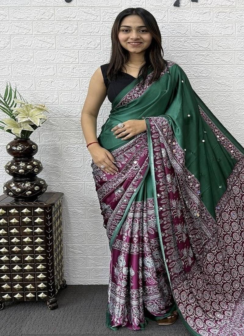 | Product Name | Green Color Heavy Mirror Work Satin Silk Saree | |