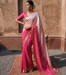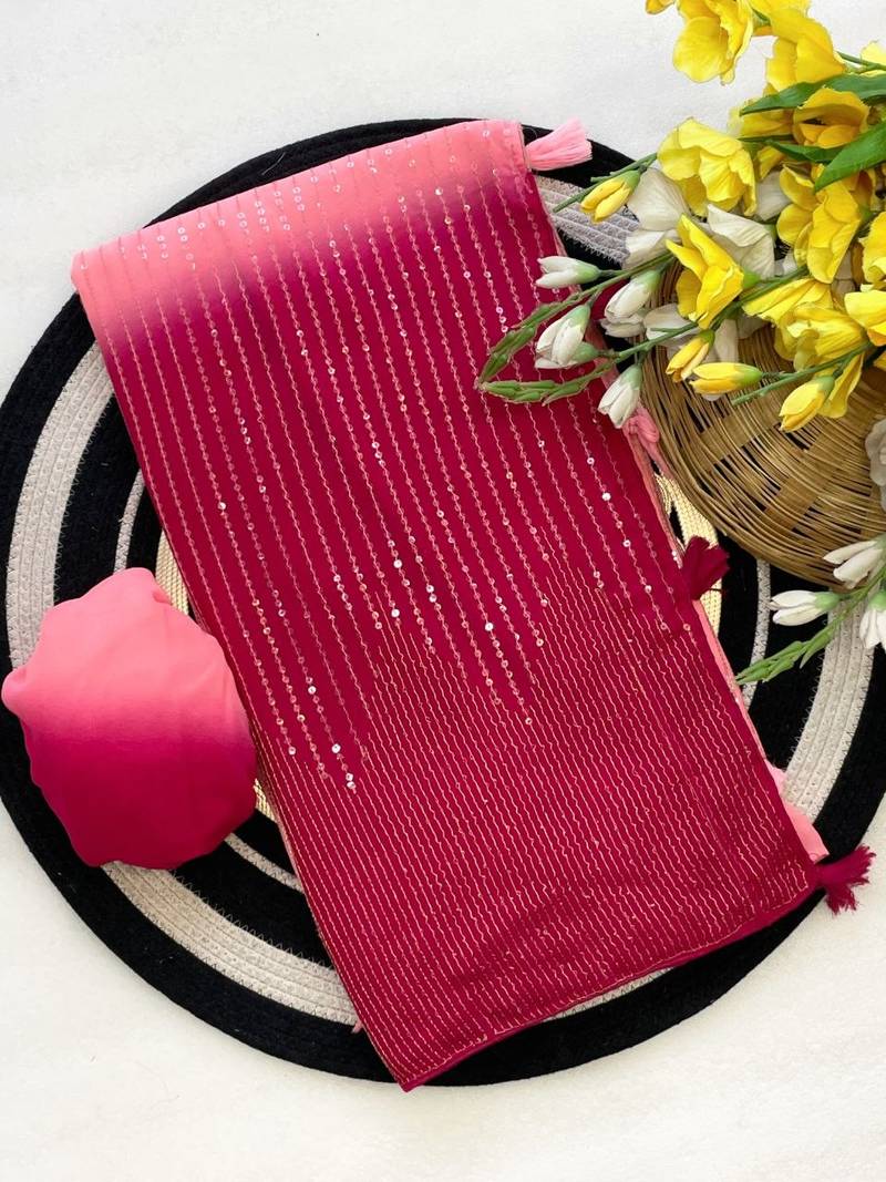 Pink color zari & dual sequins embroidery work faux georgette saree