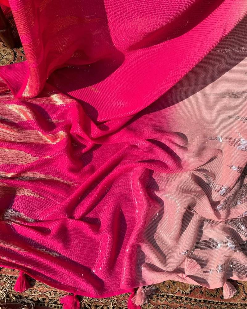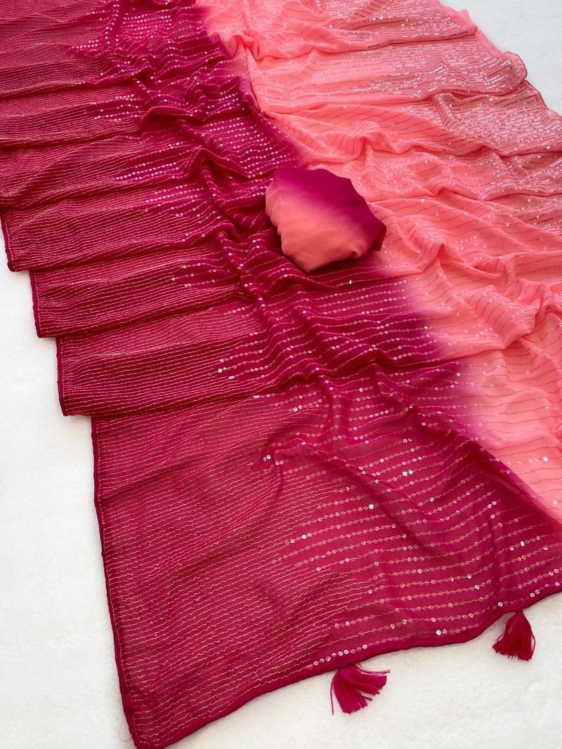 | Product Name | Pink Color Zari & Dual Sequins Embroidery Work Faux Georgette Saree | |