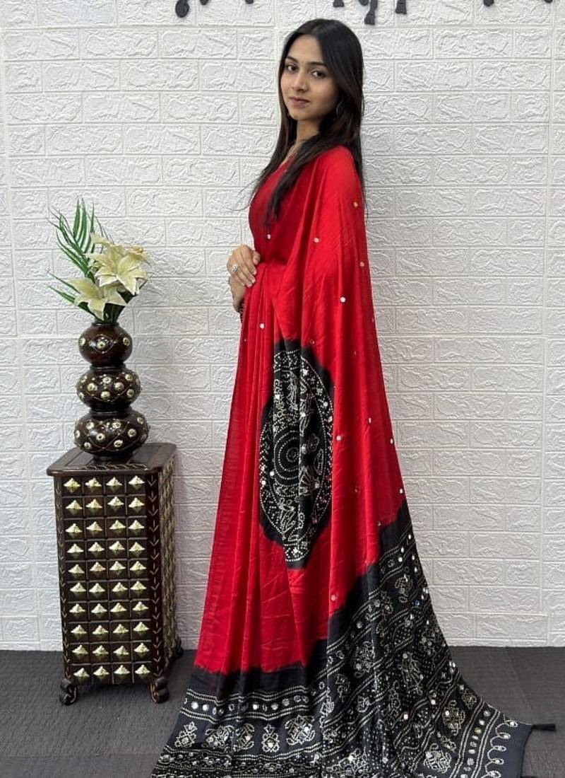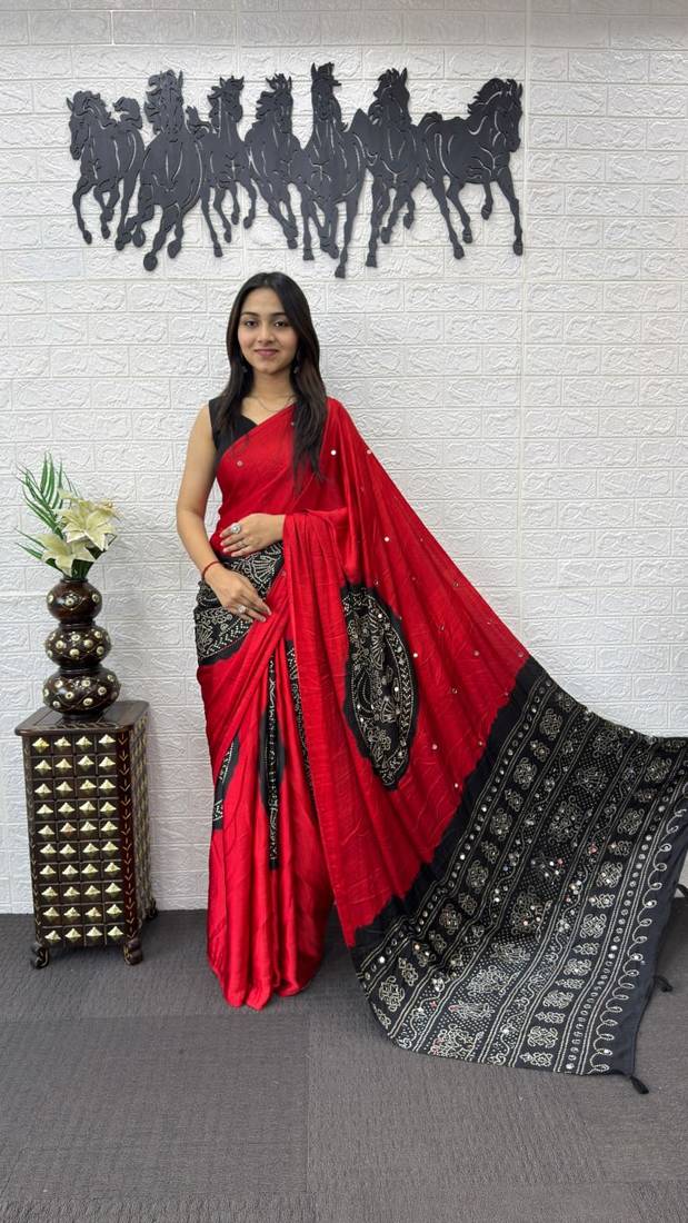 | Product Name | Red Color Heavy Mirror Work Satin Silk Saree | |