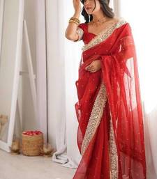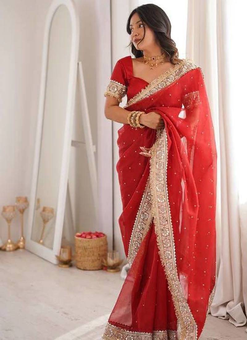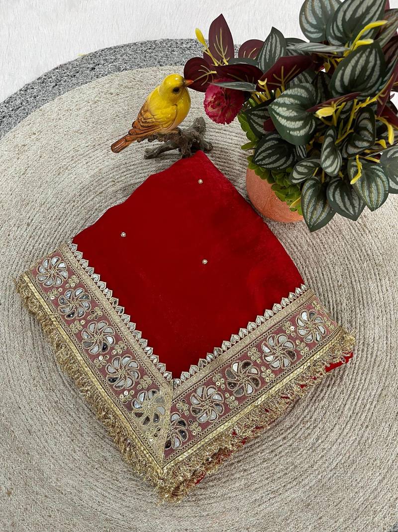 | Product Name | Red Color Jari Dori Embroidered Lace Border With Real Mirror Work Satin Silk Saree | |