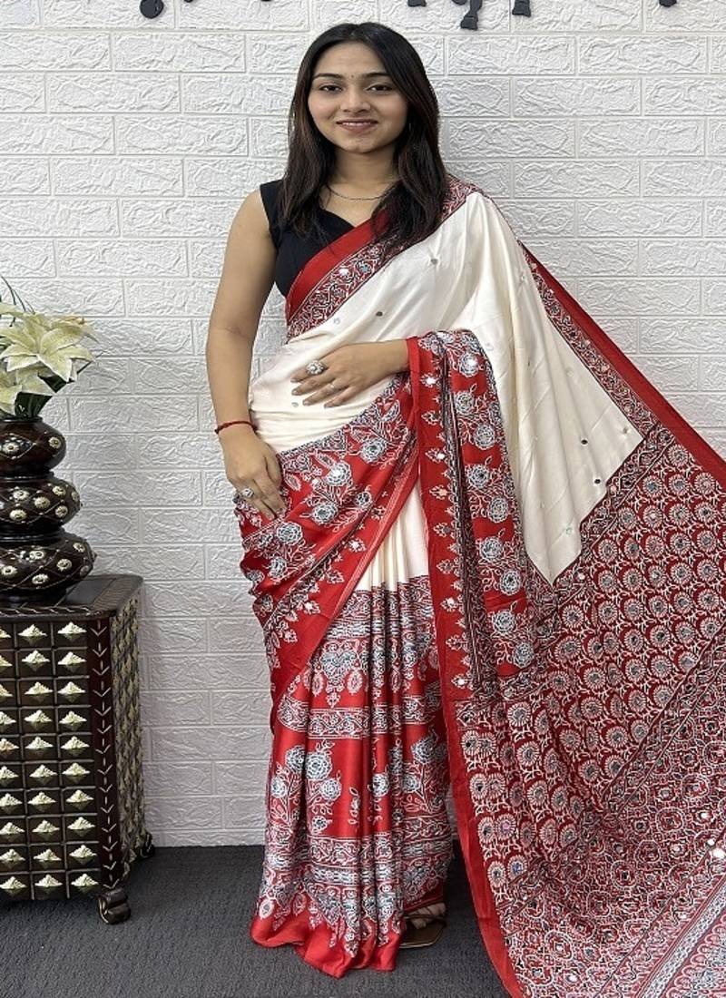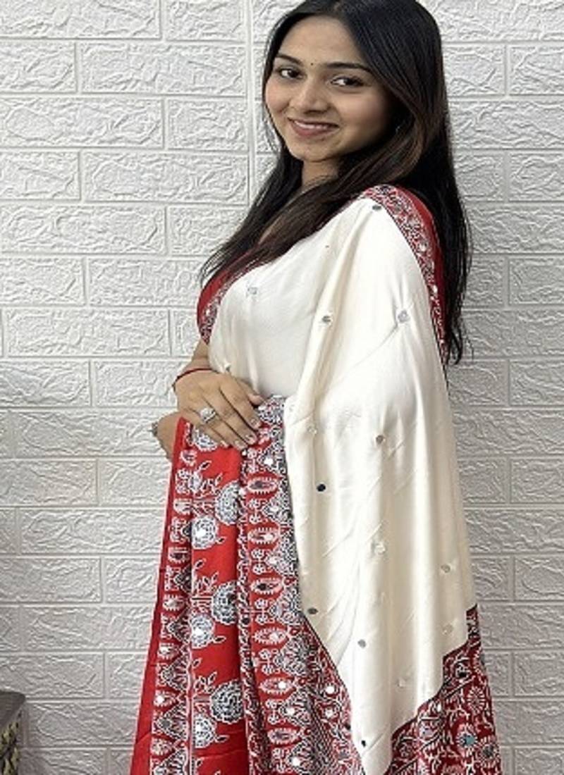 | Product Name | White Color Heavy Mirror Work Satin Silk Saree | |