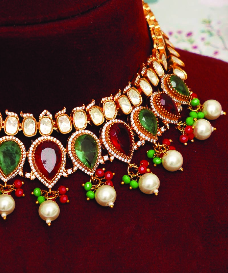 | Product Name | Gold Plated Kundan Multicolor Stones Choker Necklace Set | |