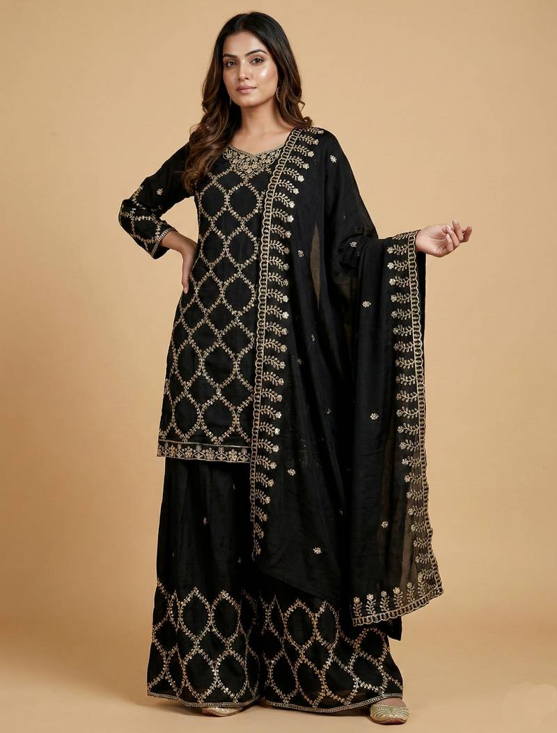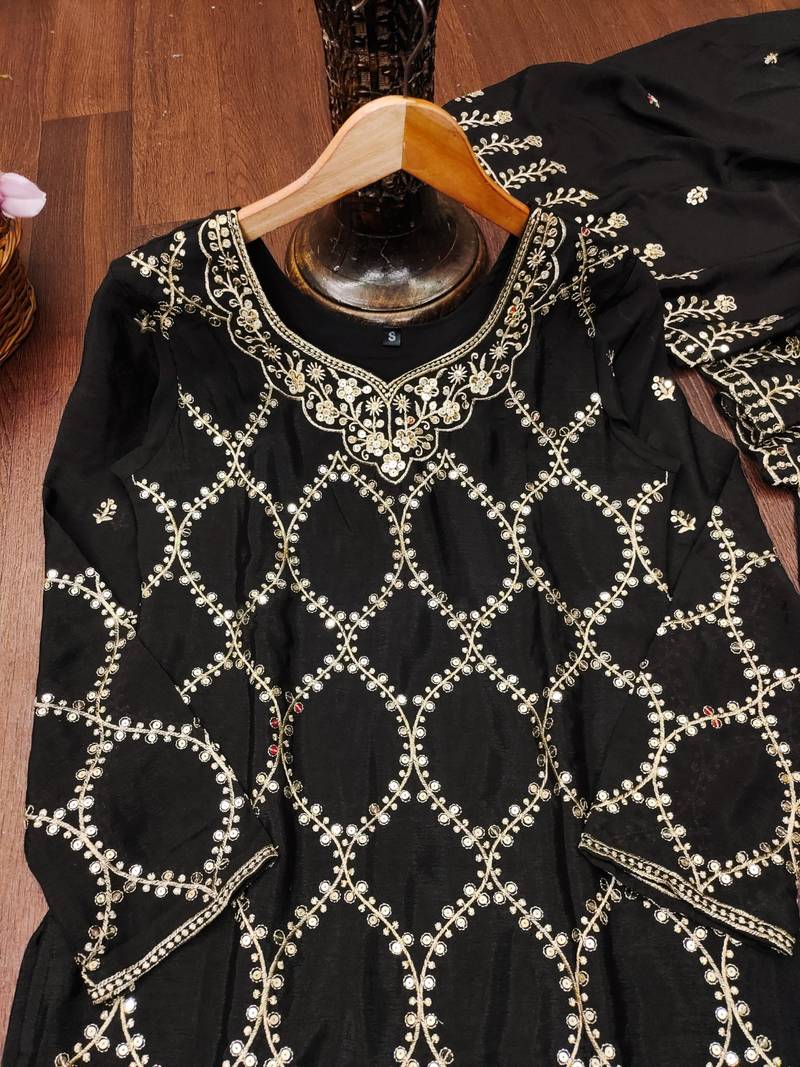 | Product Name | Black Designer Chinon Sequins Embroidered Work Readymade Suit | |