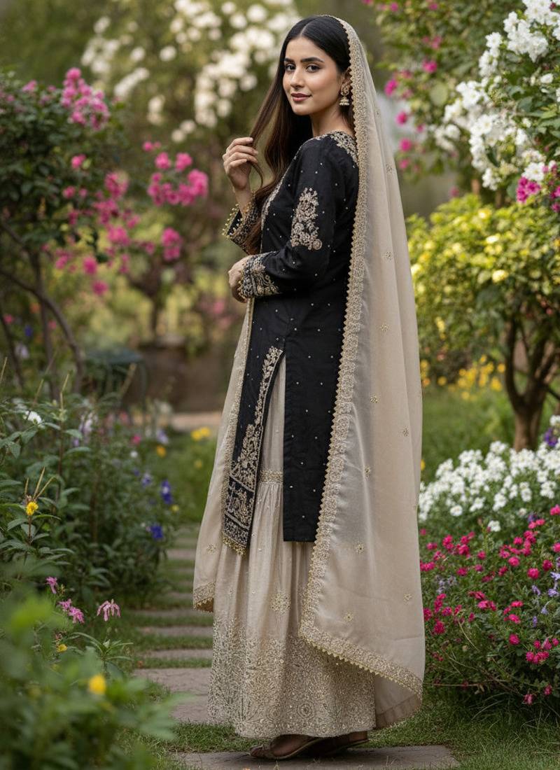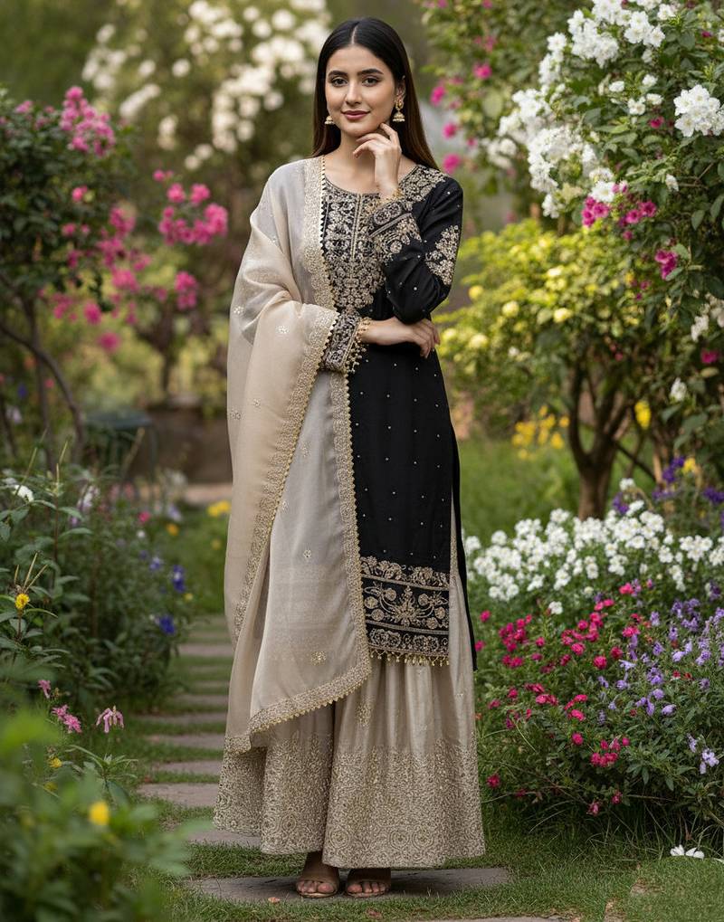 | Product Name | Black Designer Heavy Gmy Silk Sequins Embroidered Work Readymade Suit | |