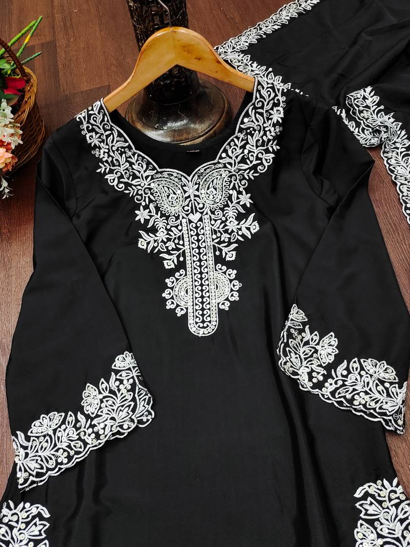 | Product Name | Black Designer Natural Crepe Sequins Embroidered Work Readymade Suit | |